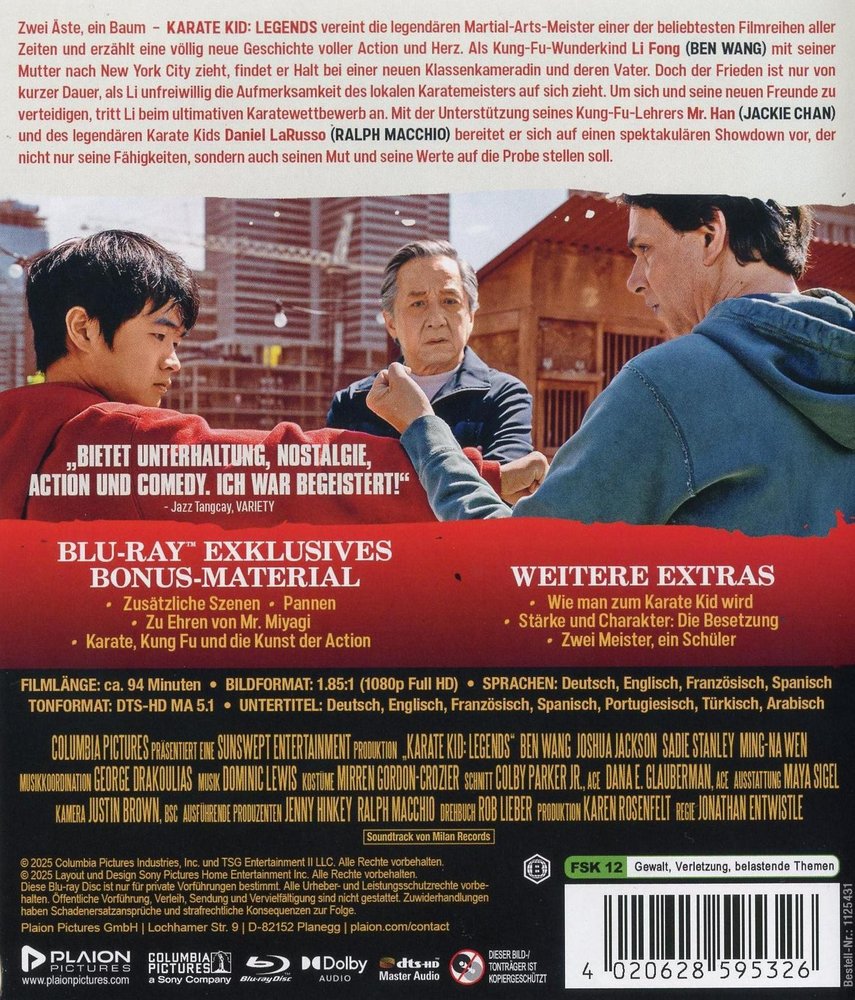 Two branches, one tree: 'Karate Kid - Legends' (2025) unites the legendary martial arts masters of one of the most popular film franchises of all time and tells an all-new story full of action and heart. Experience Jackie Chan as Mr. Han alongside Ben Wang and Ralph Macchio as Daniel, in the Karate Kid sequel 'Karate Kid - Legends', directed by Jonathan Entwistle. At the screen premiere in Germany on May 29, 2025 in cinemas. The film was directed by Entwistle ('The End of the F***ing World') and written by Rob Lieber ('Peter Rabbit'). The film was produced by Karen Rosenfelt, executive produced by Jenny Hinkey and Macchio himself. It stars Jackie Chan ('Police Story'), Ralph Macchio ('Karate Kid'), Ben Wang ('American Born Chinese'), Joshua Jackson ('Doctor Odyssey'), Sadie Stanley ('Cruel Summer') and Ming-Na Wen ('The Book of Boba Fett').