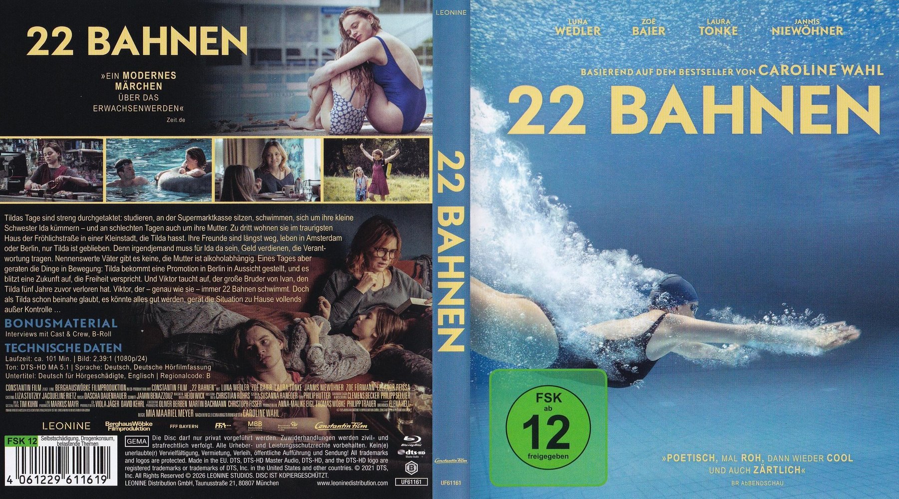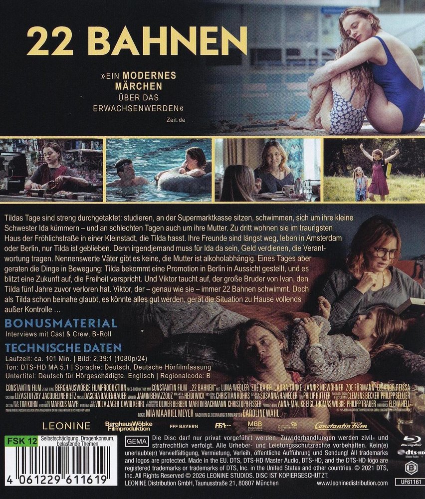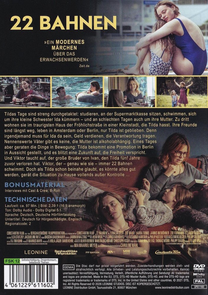 Tildas (Luna Wedler) Tage sind streng durchgetaktet: studieren, an der Supermarktkasse sitzen, schwimmen, sich um ihre kleine Schwester Ida (Zoë Baier) kümmern und an schlechten Tagen auch um ihre Mutter (Laura Tonke). Zu dritt wohnen sie im traurigsten Haus der Fröhlichstraße in einer Kleinstadt, die Tilda hasst. Ihre Freunde sind längst weg, leben in Amsterdam oder Berlin, nur Tilda ist geblieben. Denn irgendjemand muss für Ida da sein, Geld verdienen, die Verantwortung tragen. Nennenswerte Väter gibt es keine, die Mutter ist alkoholabhängig. Eines Tages aber geraten die Dinge in Bewegung. Tilda bekommt eine Promotion in Berlin in Aussicht gestellt und es blitzt eine Zukunft auf, die Freiheit verspricht. Und Viktor (Jannis Niewöhner) taucht auf, der große Bruder von Ivan, den Tilda fünf Jahre zuvor verloren hat. Viktor, der - genau wie sie - immer 22 Bahnen schwimmt. Doch als Tilda schon beinahe glaubt, es könnte alles gut werden, gerät die Situation zu Hause vollends außer Kontrolle...