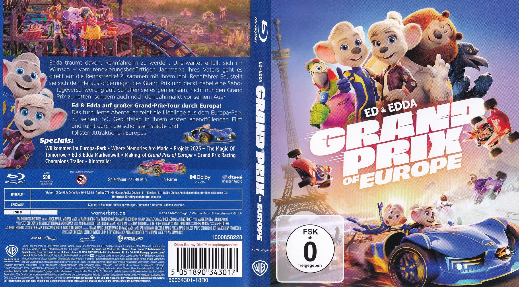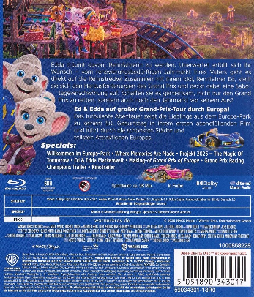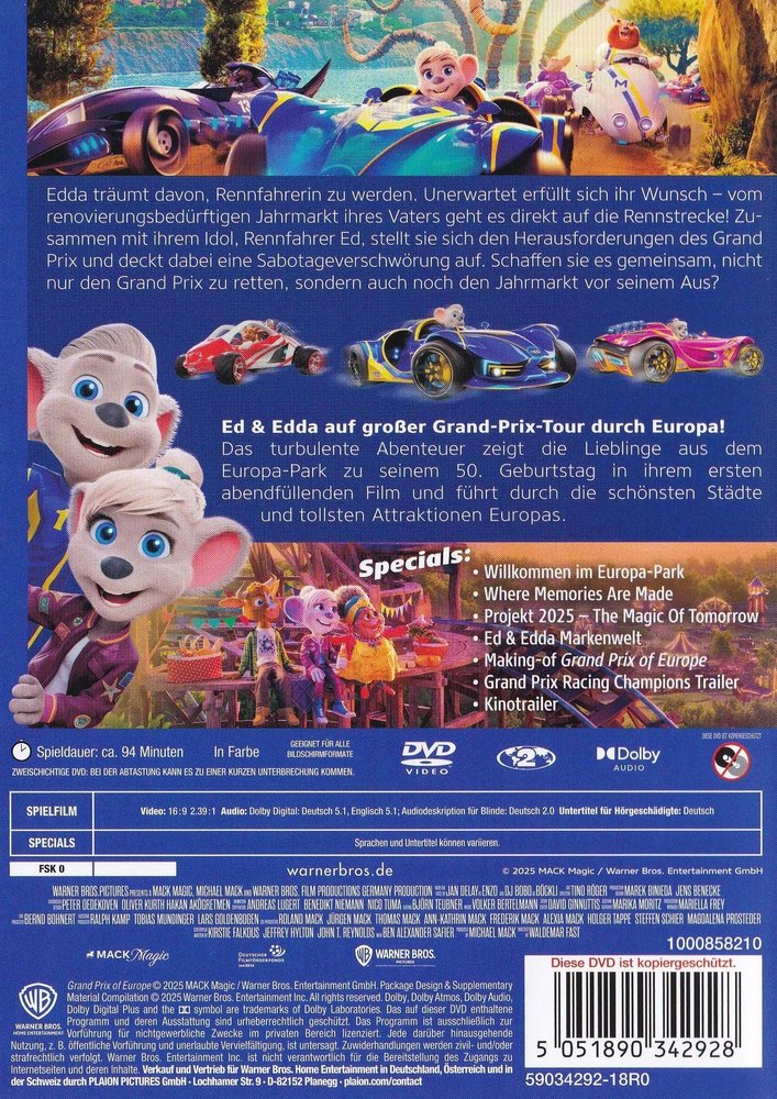 Pünktlich zum 50. Geburtstag des Europa-Park erobern Ed & Edda mit ihren Freunden in ihrem ersten eigenen Spielfilm 'Grand Prix of Europe' (2025) die Kinoleinwand. Die Koproduktion von 'MACK Magic' und 'Warner Bros. Film Productions Germany' aus der Feder von u.a. Kirstie Falkous, John Reynolds und Jeff Hylton mit Ben Safier wird mit liebenswerten Charakteren, einer fesselnden Geschichte, Action und Witz das Kinopublikum 2025 begeistern. Der Film wurde produziert von Michael Mack, geschäftsführender Gesellschafter des Europa-Park und Gründer des Entertainment-Unternehmens 'MACK Magic', und entstand in den Studios der MACK-Animation in Hannover, einem der führenden Animationsstudios in Europa, das unter anderem für die Kinoerfolge 'Konferenz der Tiere' und das 'Happy Family' Franchise verantwortlich zeichnete. Regie führte Waldemar Fast, der seit mehr als 20 Jahren in der Animationsbranche als Regisseur und Animator tätig ist und an zahlreichen erfolgreichen Produktionen beteiligt war. Produziert wurde in Rust und Hannover. 'Grand Prix of Europe' startet am 24.Juli 2025 im Verleih von 'Warner Bros. Pictures Germany' in Deutschland, Österreich und der deutschsprachigen Schweiz im Kino, gefördert vom Deutschen Filmförderfonds 'DFFF'.