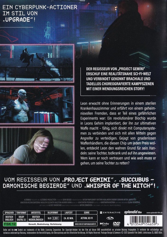 Leon (Anton Pampushnyy) wakes up with no memories in a sterile hospital room and learns from a mysterious stranger that he was part of a dangerous experiment. A revolutionary biochip has been implanted in Leon's brain, making him the ultimate weapon - capable of connecting directly to computer systems and defending against attackers by any means necessary. Hunted by merciless arms dealers who want this chip at all costs, Leon discovers the real reason for his actions: his daughter, terminally ill and dependent on him. Who can he still trust and how far does he have to go to save his daughter?