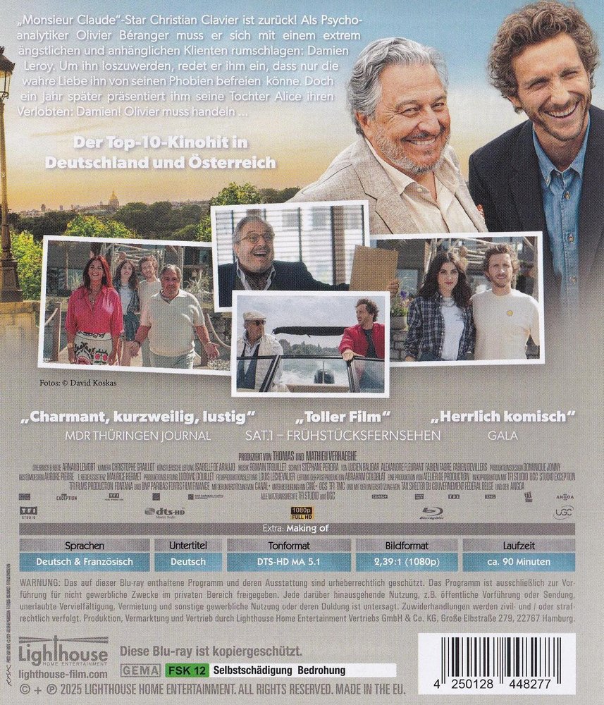 After 'Oh la la - Wer ahnt denn sowas?', 'Monsieur Claude' star Christian Clavier returns to the big screen and home cinema. As psychoanalyst Dr. Olivier Béranger, he has to deal with an extremely anxious and clingy client: Damien Leroy (Baptiste Lecaplain). To get rid of him, he persuades him that only true love can free him from his phobias. But a year later, his daughter Alice (Claire Chust) presents him with the new man at her side: Damien. Olivier has to act, because he had always imagined the perfect son-in-law differently.