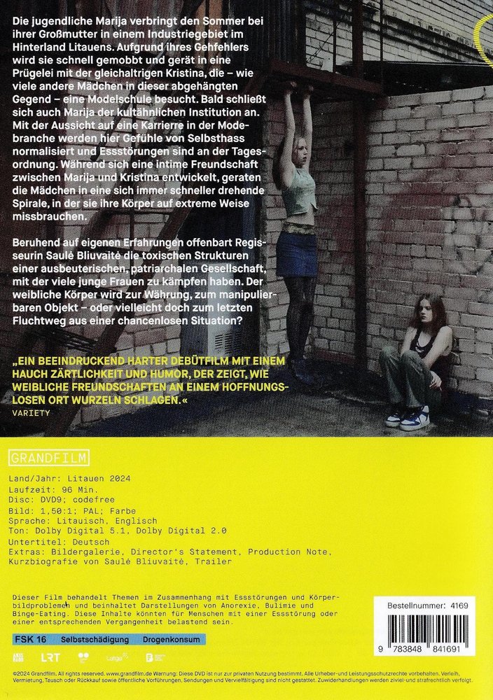 The teenage Marija (Vesta Matulyte) spends the summer with her grandmother in an industrial area in the hinterland of Lithuania. Due to her walking defect, she is quickly bullied and gets into a fight with Kristina (Ieva Rupeikaite), who is the same age as Kristina (Ieva Rupeikaite), who - like many other girls in this outcast area - attends a modeling school. Soon Marija also joins the cult-like institution. With the prospect of a career in the fashion industry, feelings of self-hatred are normalized here and eating disorders are commonplace. While an intimate friendship develops between Marija and Kristina, the girls get into an ever-faster spiral in which they abuse their bodies in an extreme way...
