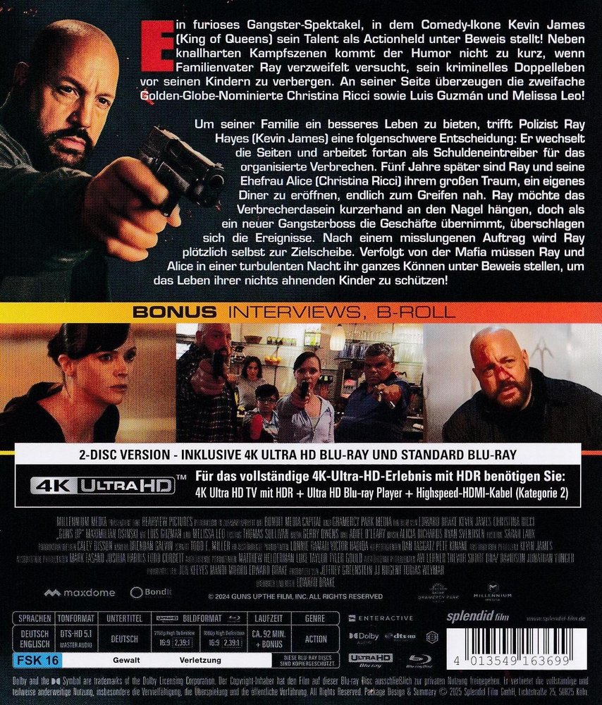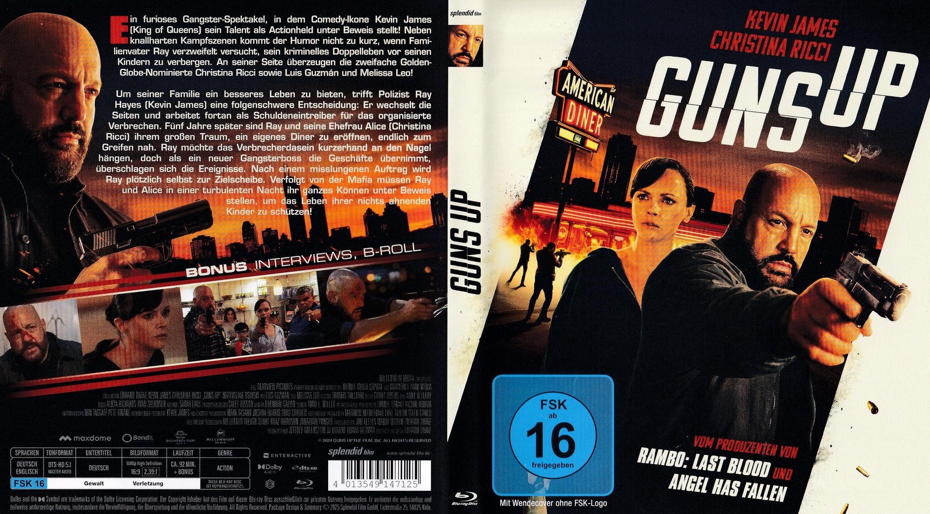 Director and screenwriter Edward Drake ('Detective Knight' franchise) directed 'Guns Up' (2025), a furious gangster spectacle in which comedy icon Kevin James ('The King of Queens') can prove his talent as an action hero. In addition to hard-hitting fight scenes, there is also a lot of humor, especially when family man Ray desperately tries to hide his criminal double life from his children. At James' side are the two-time Golden Globe nominee Christina Ricci as well as Luis Guzmán and Melissa Leo. 'Guns Up' was produced by the action experts at 'Millennium Films', among others, who have already been responsible for box office hits such as the 'The Expendables' series, the 'Has Fallen' franchise or the two 'Killer's Bodyguard' film hits. The 'Guns Up' theatrical release in Germany is reached on June 12, 2025.