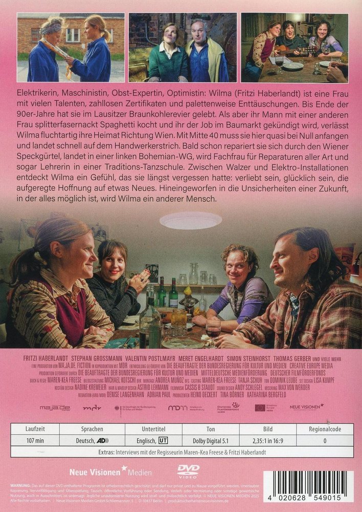 Electrician, machinist, fruit expert, optimist, Wilma (Fritzi Haberlandt) is a woman with many talents, countless certificates and pallets of disappointments. Until the end of the 90s, she lived in the Lusatian lignite mining area. But when her husband cooks spaghetti with another woman naked and her job at the hardware store is fired, Wilma leaves her home in a hurry for Vienna. In her mid-40s, she has to start from scratch and quickly ends up on the craftsman's line. Soon she repairs herself through the Viennese suburbs, ends up in a left-wing bohemian flat, becomes a specialist in repairs of all kinds and even a teacher in a traditional dance school. Between waltzes and electrical installations, Wilma discovers a feeling she had long forgotten: being in love, being happy, the excited hope of something new. Thrown into the uncertainties of a future in which anything is possible, Wilma becomes a different person...