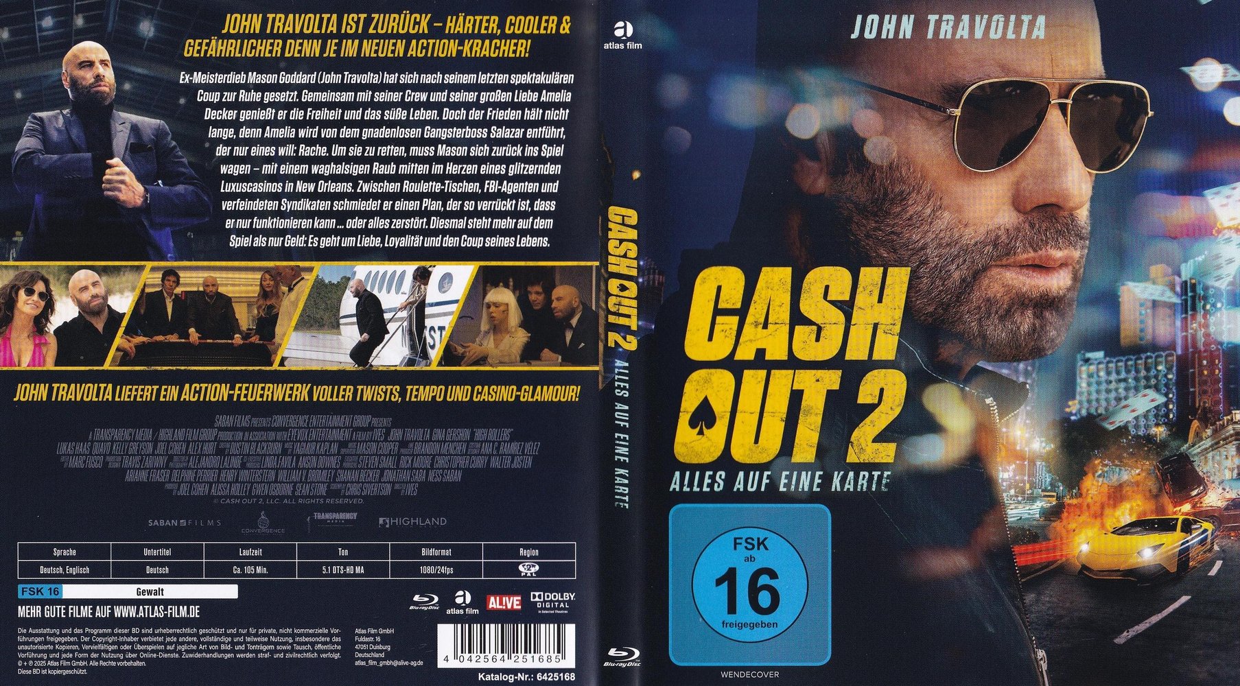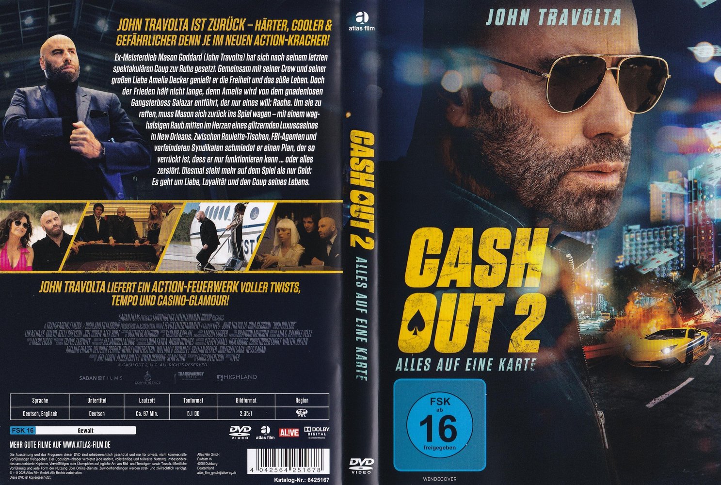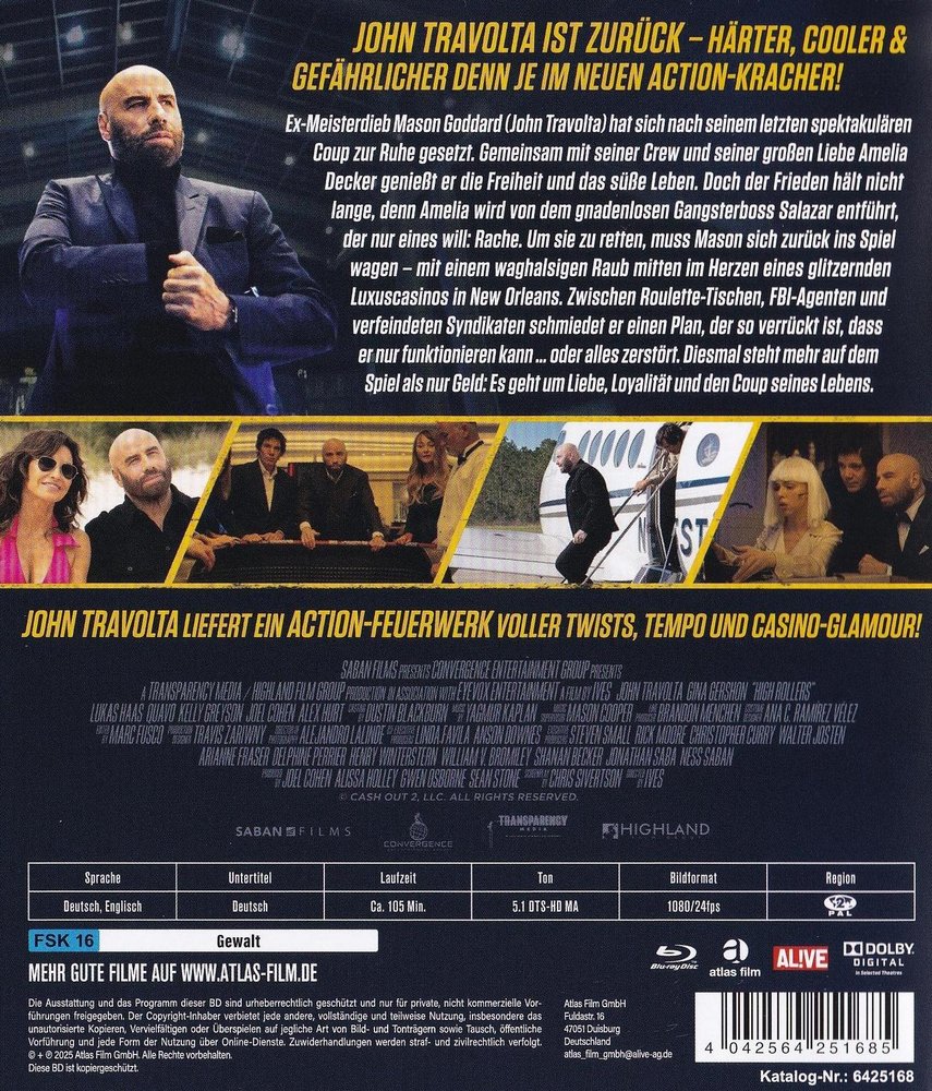 Im Heist-Movie-Sequel 'Cash Out 2 - Alles auf eine Karte' aka 'Cash Out II: High Rollers - All Bets Are Off' (2025), starbesetzt mit John Travolta als Mason Goddard, Gina Gershon als Amelia Decker, Lukas Haas als Shawn Goddard, Danny Pardo als Salazar, Quavo als Anton, Natali Yura als Link, Noel Gugliemi als Hector, Swen Temmel als Caras und Demián Castro als Zade Black unter der Regie von Randall Emmett, beim US-Kinostart am 14. März 2025 und der Deutschland-Premiere im eigenen Heimkino auf DVD und Blu-ray am 30. Oktober 2025.