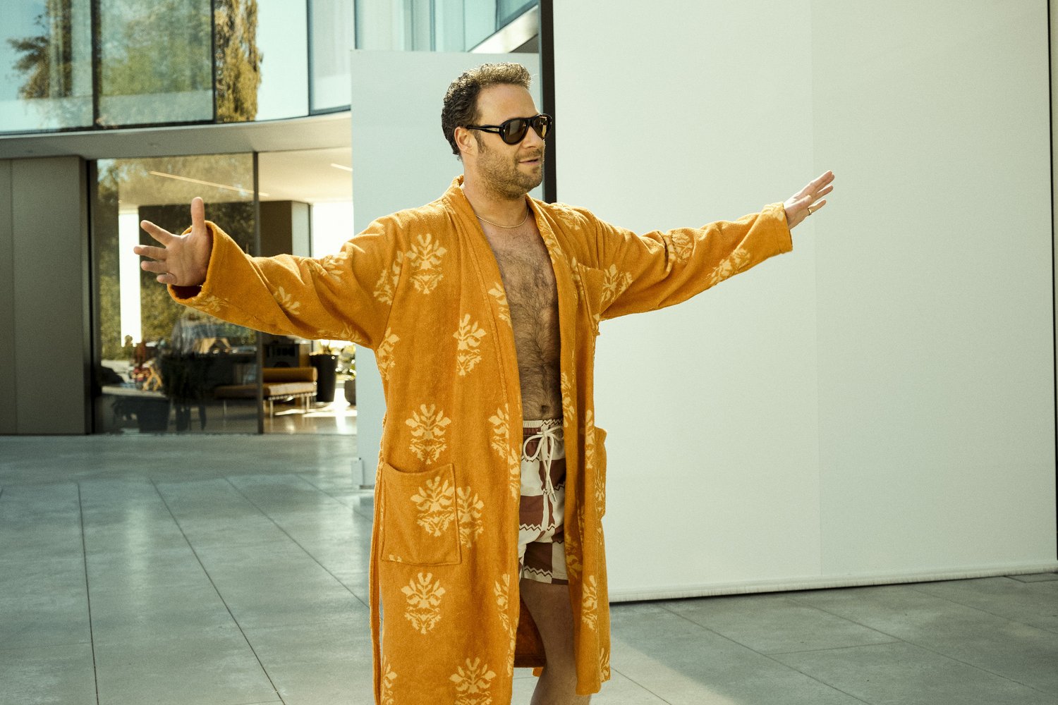 In the fantasy comedy 'Good Fortune' (2025), starring Keanu Reeves as Angel Gabriel, Seth Rogen as Jeff, Sandra Oh as Martha and Keke Palmer, and with director Aziz Ansari as Arj, at the theatrical release in Germany on October 16, 2025.