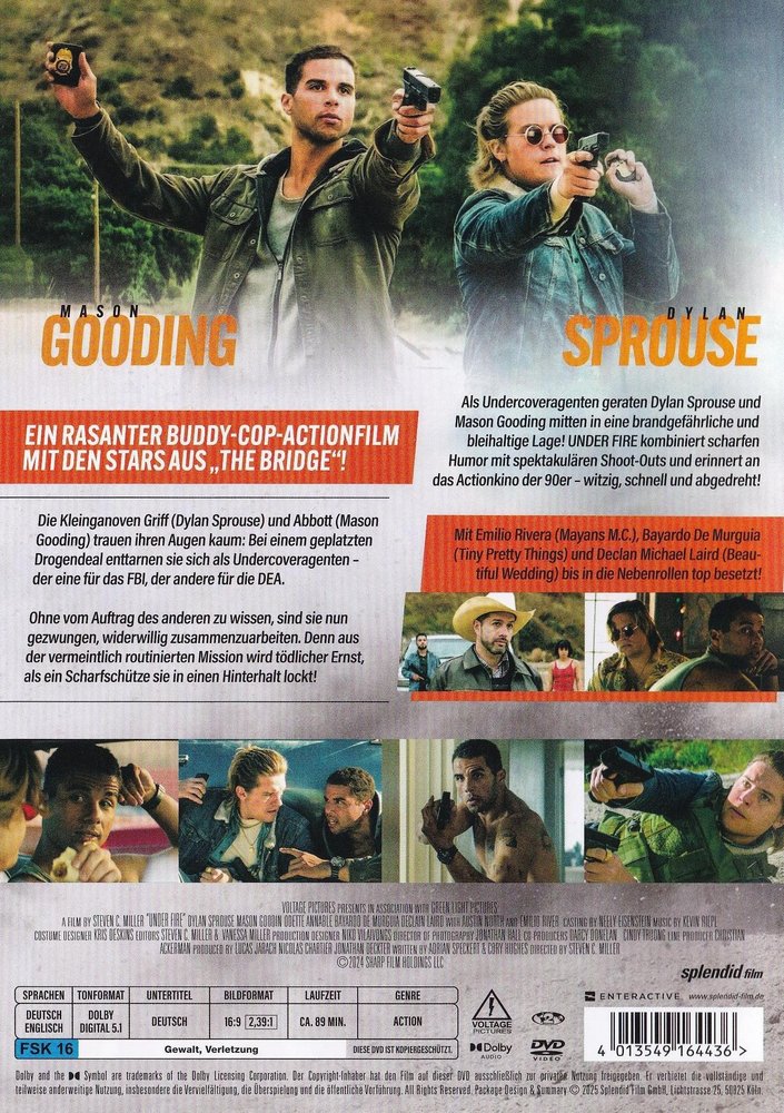 'Under Fire' (2025), a fast-paced buddy cop action film starring the stars of 'The Bridge'. As undercover agents, Dylan Sprouse and Mason Gooding find themselves in the middle of a highly dangerous and leaden situation in this action thriller from director Steven C. Miller, which combines sharp humor with spectacular shoot-outs and is reminiscent of the action cinema of the 90s. Funny, fast and wacky, with Emilio Rivera ('Mayans M.C.'), Bayardo De Murguia ('Tiny Pretty Things') and Declan Michael Laird ('Beautiful Wedding') up to the supporting roles.
