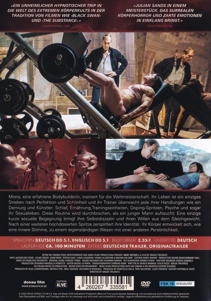 Mona (Jacqueline Fuchs), an experienced bodybuilder, is training for the World Championships. Her life is a single pursuit of perfection and beauty, and her coach supervises her every action like a demiurge and artist: sleep, nutrition, workouts, doping injections, psyche, and even her sex life. This routine is broken when a young man appears. A single brief sexual encounter throws their self-discipline and will out of balance. After another high-dose injection, her identity splinters. Her body, like an inner voice, develops into an independent being with a different personality...