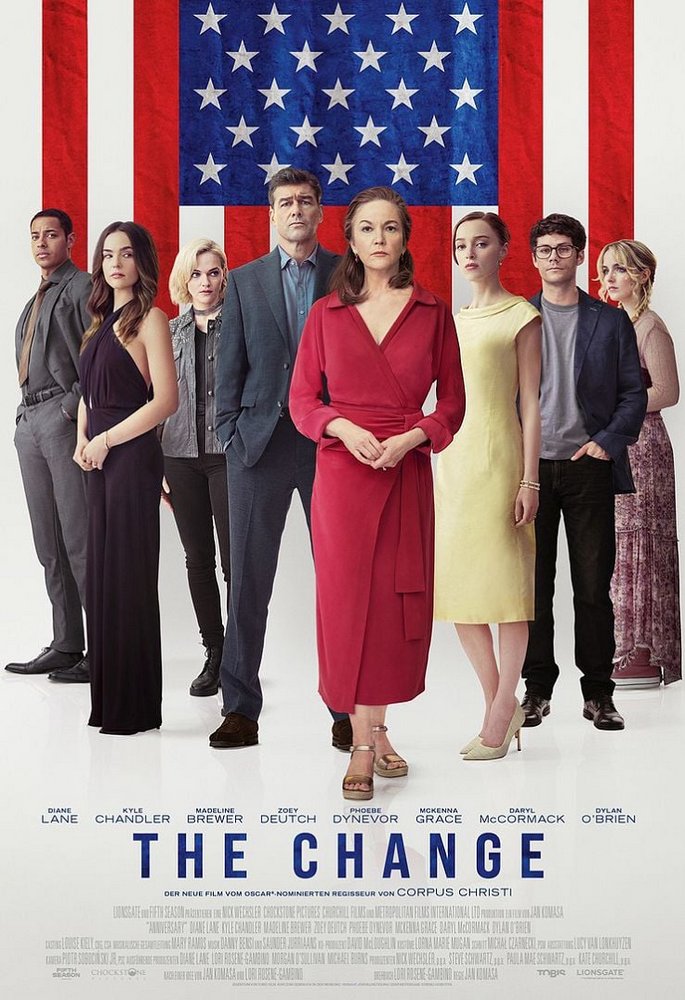 Eine eng verbundene Familie wird auseinandergerissen, als die neue soziale Bewegung namens 'The Change' das Land erfasst: Im US-Thriller 'The Change' alias 'Anniversary' (2025) mit Diane Lane als Ellen, Kyle Chandler als Paul, Zoey Deutch als Cynthia, Mckenna Grace als Birdie, Madeline Brewer als Anna, Phoebe Dynevor als Liz, Flavia Watson als Gemma, Dylan O'Brien als Josh und Daryl McCormack als Rob unter der Regie von Jan Komasa, beim Kinostart in Deutschland am 6. November 2025. Messerscharf seziert Regisseur Komasa ('Corpus Christi', 'The Hater') in seinem englischsprachigen Debüt die Ausbreitung einer faschistoiden Ideologie in scheinbar gefestigten Kreisen. Was passiert, wenn Politik eine ganze Familie spaltet? Wie standhaft ist die Demokratie? Im Zentrum dieses Geniestreichs steht ein aufregendes, junges Ensemble rund um Diane Lane ('Untreu') und Kyle Chandler ('Bloodline'). Ein ebenso düsterer wie erhellender Blick in die nahe Zukunft.