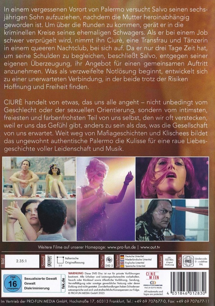 Das italienische Filmdrama 'Ciurè' (2022) handelt von etwas, das uns alle angeht - nicht unbedingt vom Geschlecht oder der sexuellen Orientierung, sondern vom intimsten, freiesten und farbenfrohsten Teil von uns selbst, den wir oft verstecken, weil er uns das Gefühl gibt, anders zu sein als das, was die Gesellschaft von uns erwartet. Weit weg von Mafiageschichten und Klischees bildet das ungewohnt authentische Palermo die Kulisse für eine raue Liebesgeschichte voller Leidenschaft und Musik, inszeniert von Regisseur und Hauptdarsteller Gianpiero Pumo neben Vivian Bellina als Ciurè, Marilù Pipitone als Valeria, William Angiuli als Prete, Emmanuele Minafò als Mercante, Maurizio Bologna als Tony und Ernesto Tomasini als 'La Magnifica'.