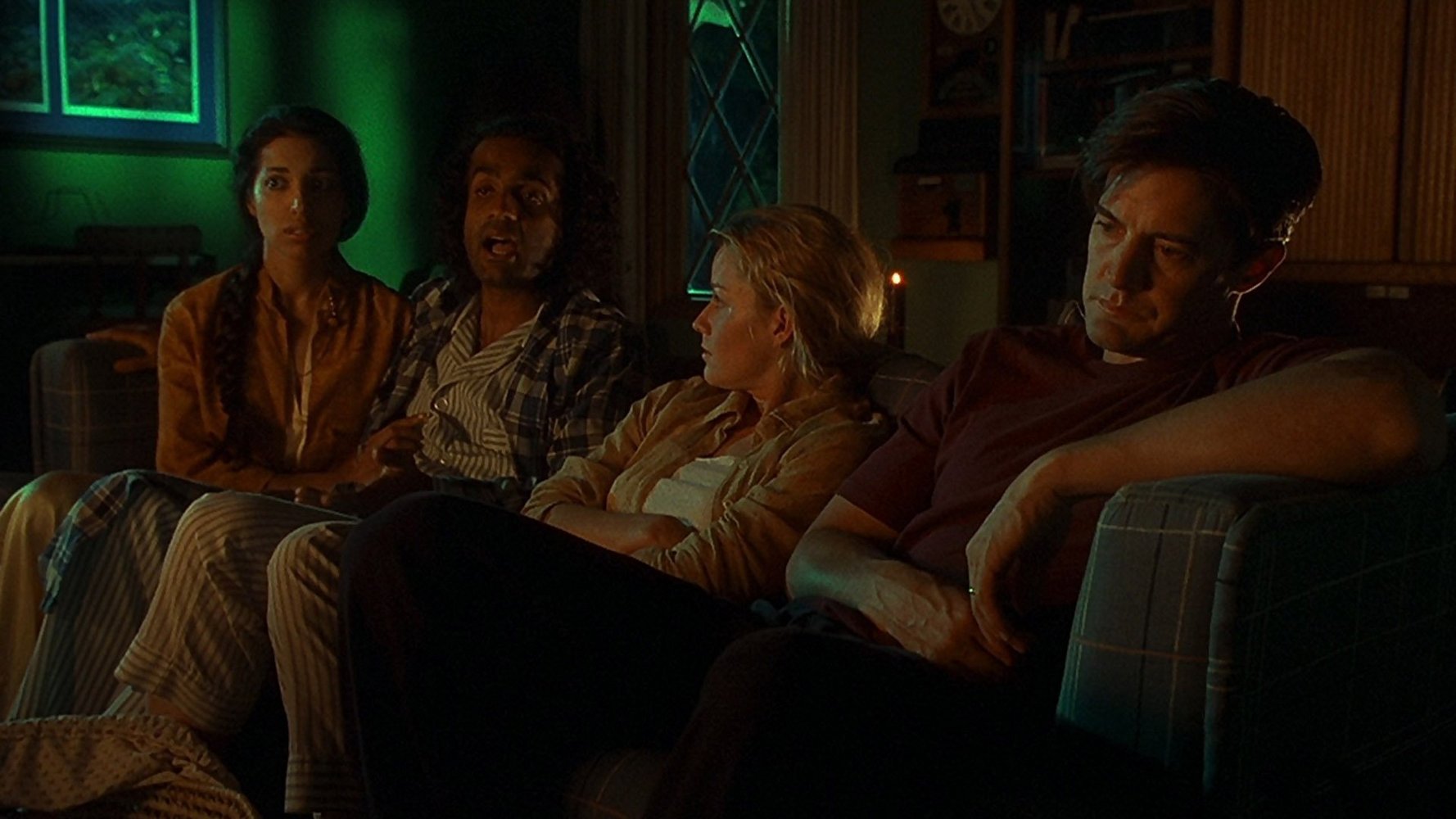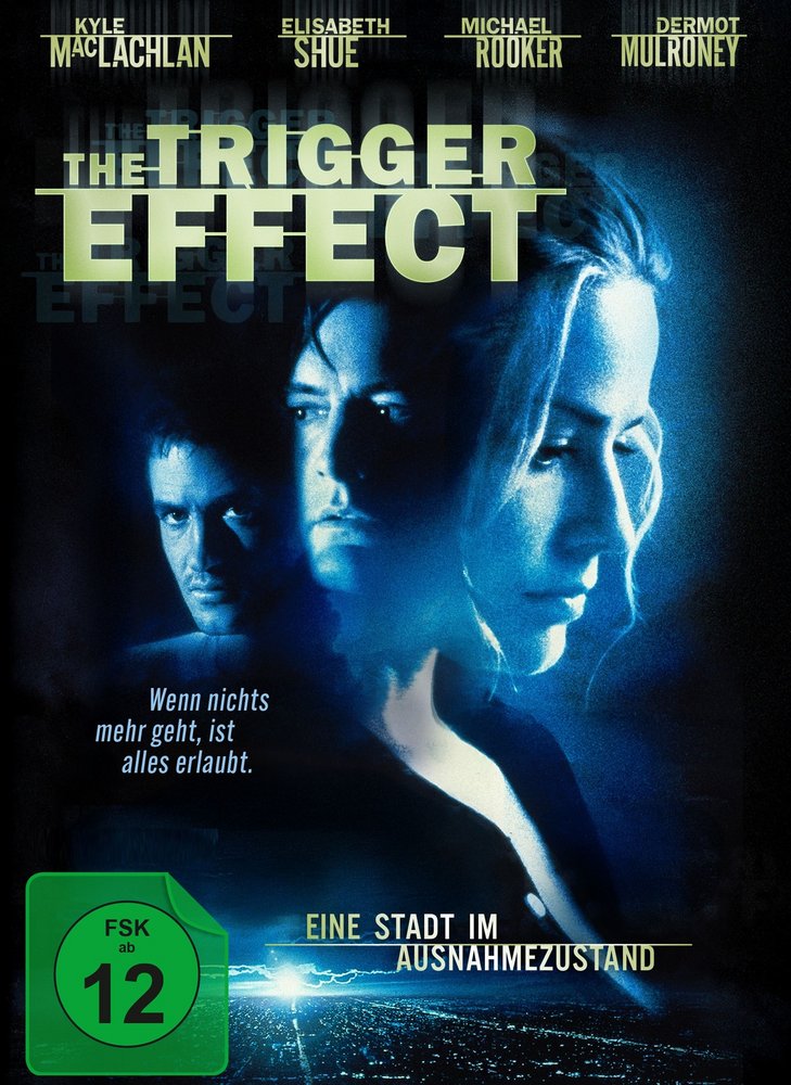 'The Trigger Effect' (1996), an intense state of emergency thriller by director David Koepp with Kyle MacLachlan as Matthew, Elisabeth Shue as Annie, Dermot Mulroney as Joe, Richard T. Jones as Raymond, Bill Smitrovich as Steph, Michael Rooker as Gary, Mônica Torres and Molly Morgan as babysitters about fear, control and the creeping decay of human values - oppressively close to reality.