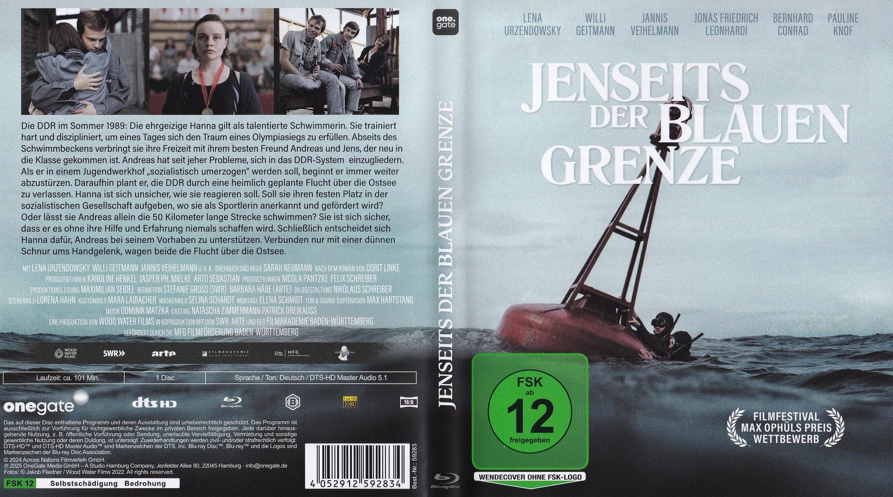 Hanna gave up her big dream of competitive swimming in the GDR and fled across the Baltic Sea with her best friend Andreas, who had been targeted by the authorities, in the summer of 1989. Fifty kilometers of water separate her from freedom. And only a thin, connecting cord around her wrist saves her from absolute loneliness, in the German feature film 'Jenseits der blauen Grenze' (2024) with Lena Urzendowsky as Hanna Klein, Winnie Böwe as Rita Kuschwitz, Ronny Miersch as caretaker Zschoche, Pauline Knof as Elisabeth Klein, Stefan Mocker as Falk Kuschwitz, Mareike Beykirch as Mrs. Kröger, Torsten Ranft as Dr. Hübner, Nadine Pape as Intershop saleswoman, Norbert Stöß as neighbor Sommer, Jörg Westphal as sports official Behrens, Bernhard Conrad as Olaf Klein and Uwe Preuss as director Schneider, directed by Sarah Neumann, with the nationwide theatrical release in Germany on October 3, 2024.