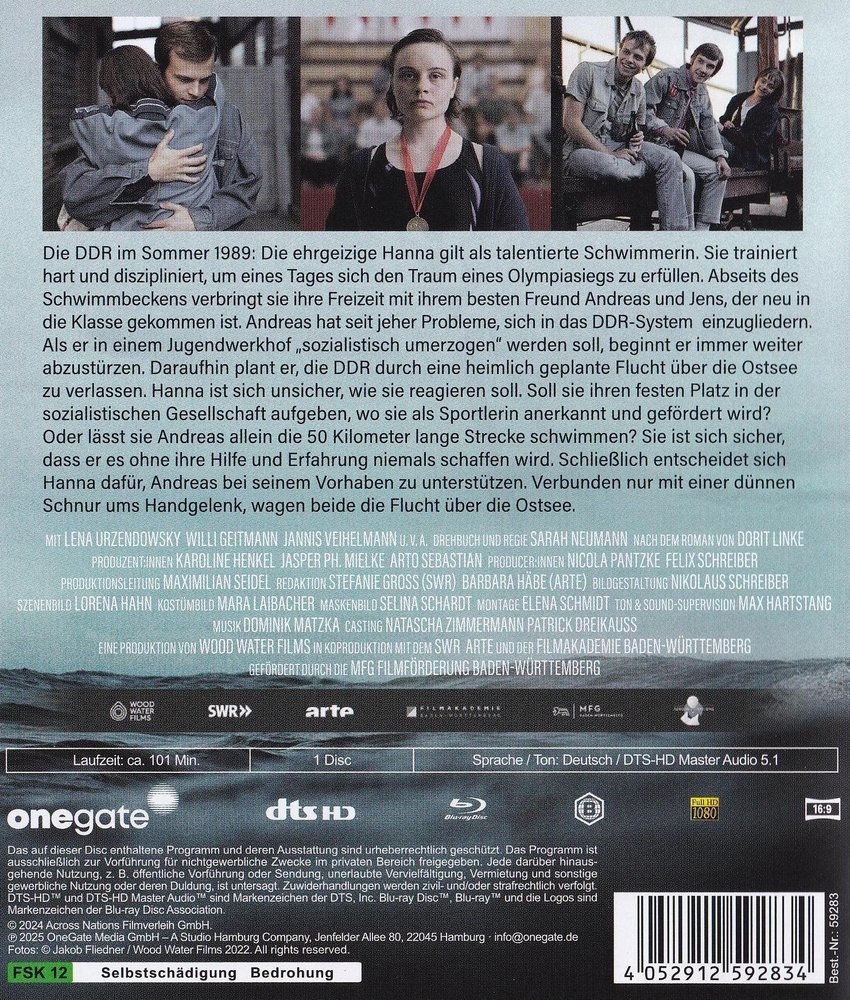 The GDR in the summer of 1989. The ambitious Hanna Klein (Lena Urzendowsky) is considered a talented swimmer. She trains hard and disciplined to one day fulfill her dream of an Olympic victory. Away from the swimming pool, she spends her free time with her best friend Andreas Kuschwitz (Willi Geitmann) and Jens Blum (Jannis Veihelmann), who has just joined the class. Andreas has always had problems integrating into the GDR system. When he is to be 're-educated in a socialist way' in a youth workyard, he begins to fall further and further. He then plans to leave the GDR by secretly planning an escape across the Baltic Sea. Hanna is unsure how to react. Should she give up her permanent place in socialist society, where she is recognized and promoted as an athlete? Or will she let Andreas swim the 50-kilometer route alone? She is sure that he will never make it without her help and experience. Finally, Hanna decides to support Andreas in his project. Connected only with a thin cord around their wrists, they both dare to flee across the Baltic Sea...