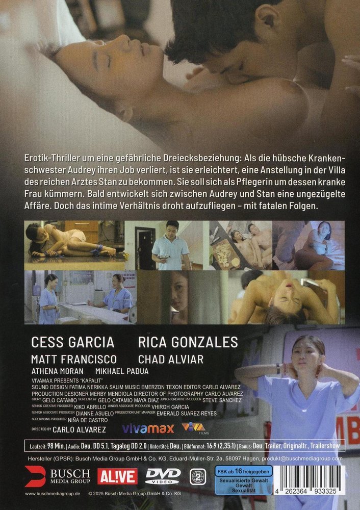 'Private Nurse' (2024), ein philippinischer Erotikthriller um eine gefährliche Dreiecksbeziehung mit Cess Garcia als Audrey, Rica Gonzales als Demi, Matt Francisco als Stan, Chad Alviar als Richard, Mikhael Padua als Paco, Rhealyn Ayson als Jenny, Beverly Benig als Tänzerin, Candy Veloso als Liza und Vas Palacay als Mac unter der Regie von Carlo Alvarez.