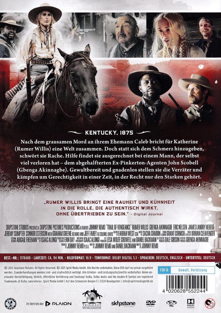 Grippingly directed, strongly cast with Rumer Willis in one of her most intense roles, 'Trail of Vengeance' (2025) is an emotional ride through pain, hope and redemption. A film about courage, loyalty and the power not to lose sight of the light even in the deepest darkness. After the gruesome murder of her husband, Katherine swears revenge on those responsible, because justice belongs only to the strong. In addition to Willis as the powerful, emotionally charged widow Katherine on a quest for revenge, an experienced cast shines around Jeff Fahey as Colonel Davis, Graham Greene as Hoko, Gbenga Akinnagbe as John Scobell, Eric Nelsen as Frank Cooper, James Landry Hébert as Zeke, Jeremy Sumpter as Caleb, Ryan Francis as Jared Starwood and Connor Esterson as Caleb Junior. Director Johnny Remo, who is known for his work in thrillers and westerns, uses all his experience here to create a highly exciting western.