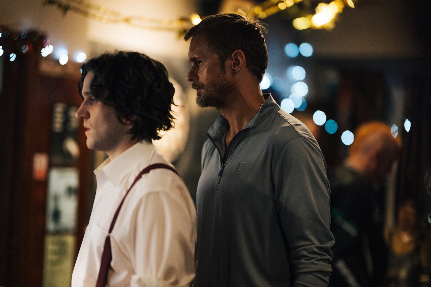 Im Cannes-prämierten britisch-irischen Drama 'Pillion' (2025) mit Harry Melling als Colin, Alexander Skarsgård als Ray, Lesley Sharp als Peggy, Douglas Hodge als Pete und Jake Shears als Kevin unter der Regie von Harry Lighton. Skarsgård und 'Harry Potter' Star Melling brillieren in Lightons überraschend sensiblem BDSM-Drama mit einer herausragenden Performance voller Humor, Zärtlichkeit und emotionaler Tiefe. 'Pillion' basiert auf der preisgekrönten Romanvorlage 'Box Hill' von Adam Mars-Jones und feierte seine umjubelte Weltpremiere bei den Filmfestspielen von Cannes 2025, wo er den Drehbuchpreis in der Sektion 'Un Certain Regard' erhielt.