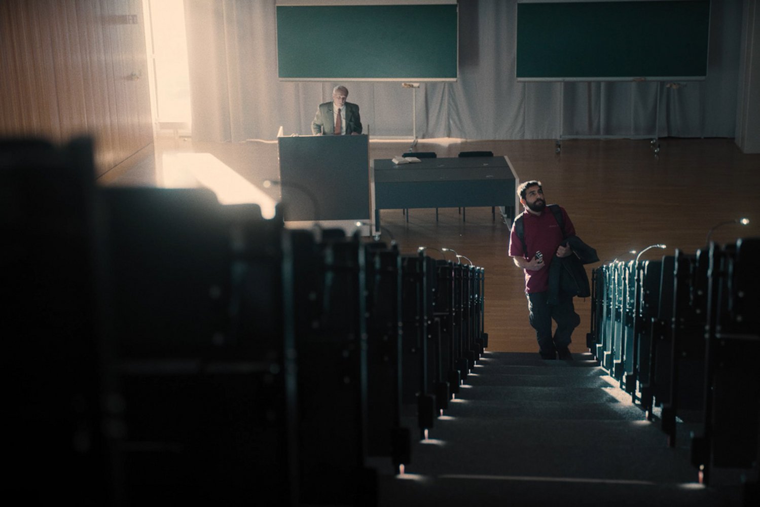 Ein sympathischer Familienvater mit iranischen Wurzeln und ein Professor für Islamwissenschaft. Der eine bittet den anderen zu einem Gespräch über Glauben und Unglauben, Gut und Böse und über die Frage, ob die Gebote des Korans mit Gewalt vereinbar sind. Was scheinbar harmlos im Film 'Martin liest den Koran' von Jurijs Saule beginnt, entwickelt sich zu einem mentalen Kräftemessen, als dem Professor klar wird, dass sein Besucher einen Anschlag plant und die Bombe bereits scharf macht. Nichts steht fest, nichts ist so, wie es scheint in diesem Drama, das drängende Fragen nach Hass und Versöhnung, den Ursachen von Radikalisierung, gegenseitiger Achtsamkeit und einer Welt mit und ohne Gott stellt: Martin (Zejhun Demirov) ist ein 35 Jahre alter Familienvater mit iranischen Wurzeln, der erst seit einem Jahr den Islam studiert. Er besucht Professor Dr. Neuweiser (Ulrich Tukur), einen Professor für Islamwissenschaft, um ihm von seinem aufregenden Terroranschlag zu erzählen, den er heute Morgen initiiert hat. Martin ist verwirrt, wenn man Terroristen kritisiert, denn er glaubt, sie würden nur das befolgen, was im Koran steht. Oder kann Professor Neuweiser Martin eine Passage zeigen, die eindeutig verbietet, Menschen mit Bomben zu töten? Wenn nicht, wird Martins Bombe folgerichtig viele Menschen töten. Dem Professor bleibt keine andere Waffe als der Koran selbst, das Wort Gottes, um zu beweisen, dass Gewalt verboten ist. Aber hat Martin den Professor wirklich nur aufgesucht, um den Rat eines 'weisen Mannes' einzuholen, oder verbirgt sich etwas anderes hinter dem unangekündigten Besuch? Martin selbst ist den ganzen Film über das große Rätsel, das sich erst am Ende in seiner ganzen emotionalen Tiefe entfaltet, um schließlich in den Herzen der Zuschauer zu detonieren...