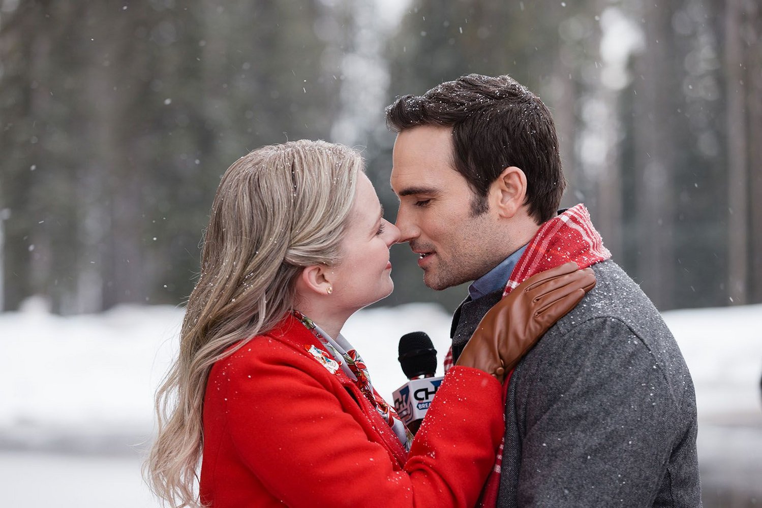 Im kanadischen Liebesfilm 'Wetterfee sucht Weihnachtswunder - Das Liebesgestöber' alias 'Snowy with a Chance of Christmas' (2024) von Regisseur Nicholas Humphries mit Andrea Brooks, Giles Panton, Ajay Caleb und Carly Fawcett.
