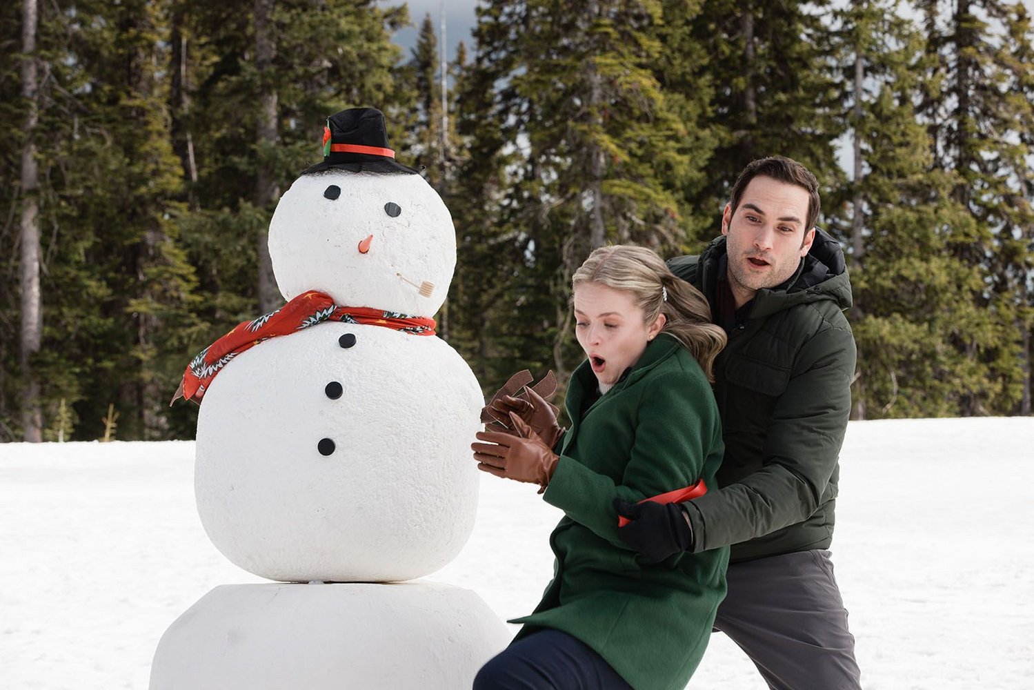 In the Canadian romance film 'Weather Fairy Seeks Christmas Miracle' aka 'Snowy with a Chance of Christmas' (2024) by director Nicholas Humphries with Andrea Brooks, Giles Panton, Ajay Caleb and Carly Fawcett.