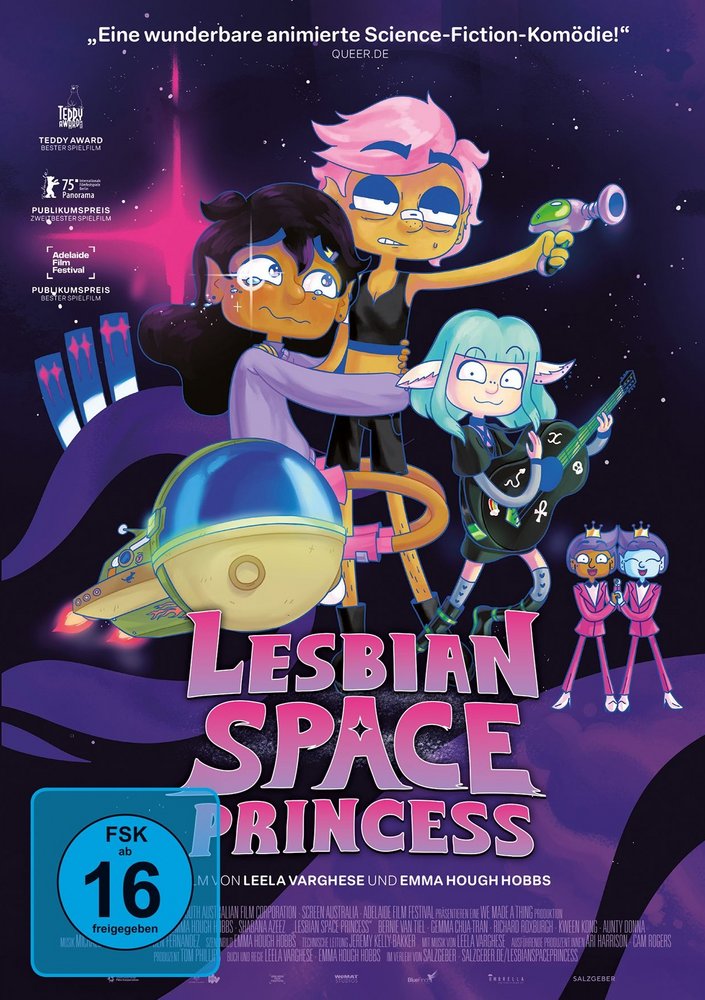 'Lesbian Space Princess' (2024) ist umwerfend witzig, knallbunt, euphorisch, kompromisslos queer. Der erste Spielfilm des australischen Regieduos Leela Varghese und Emma Hough Hobbs ist ein mitreißender intergalaktischer Selbstfindungstrip mit ganz großem Herzen und Lust auf Krawall, irgendwo zwischen wilder Sci-Fi-Musical-Komödie und heilsamer Coming-of-Age-Abenteuerreise. Dafür gab es auf der Berlinale 2025 den Teddy-Award und den 2. Platz beim Panorama-Publikumspreis. Ein riesiger Spaß für die ganze Familie, eindeutig. Freigegeben allerdings ab 16, finden die Sittenwächter der FSK, aus Gründen, so geheimnisvoll wie der unendliche Weltraum. Der Film überzeugt aber nicht nur im Original, sondern auch in der deutschen Synchronfassung, die mit Lena Urzendowsky ('In die Sonne schauen', 'Kokon'), Jasmin Tabatabai ('Bandits', 'Fremde Haut'), Katy Karrenbauer ('Hinter Gittern - Der Frauenknast'), Genet Zegay ('Jugend ohne Gott'), Lana Cooper ('Love Steaks', 'Looping') und Kelly Heelton ('Drag Race Germany') ein paar unserer liebsten Celebrities vereint. Im englischen Original werden die Hauptfigren Saira von Shabana Azeez und Kopfgeldjägerin Kiki von Bernie Van Tiel gesprochen, zum Kinostart in Deutschland am 22.01.2026.