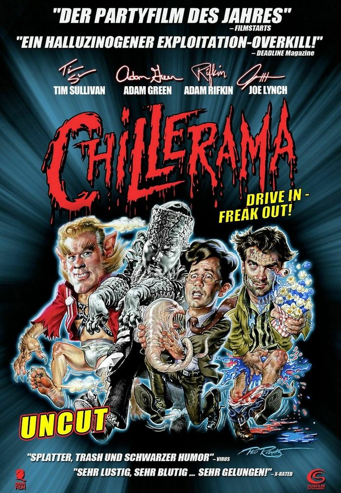 Cult directors Adam Green ('Hatchet'), Joe Lynch ('Wrong Turn 2'), Tim Sullivan ('2001 Maniacs') and Adam Rifkin ('Detroit Rock City') ignite a trash firework with 'Chillerama - The Ultimate Midnight Movie' (2011) that makes the hearts of all genre fans explode with joy. Here, every gag is guaranteed to go below the belt and no part of the body remains unremoved.