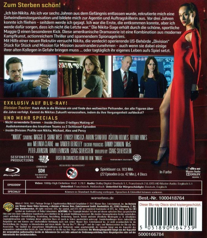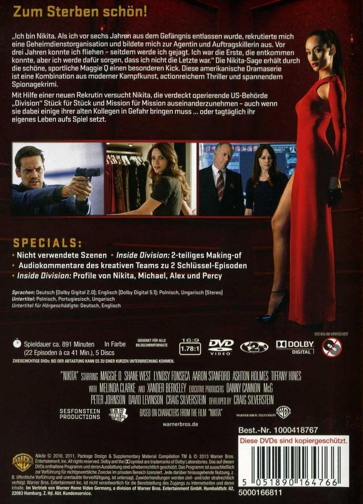 "I'm Nikita. When I was released from prison six years ago, an intelligence organization recruited me and trained me as an agent and hitman. Three years ago I was able to flee - since then I have been hunted. I was the first to escape, but I'll make sure I wasn't the last." The Nikita saga gets a special kick from the beautiful sporty Maggie Q. This American drama series is a combination of modern martial arts, action-packed thriller and suspenseful spy thriller. With the help of a new recruit, Nikita tries to dismantle the covert US agency 'Division' piece by piece and mission by mission - even if she has to put some of her old colleagues in danger or puts her own life at risk every day.