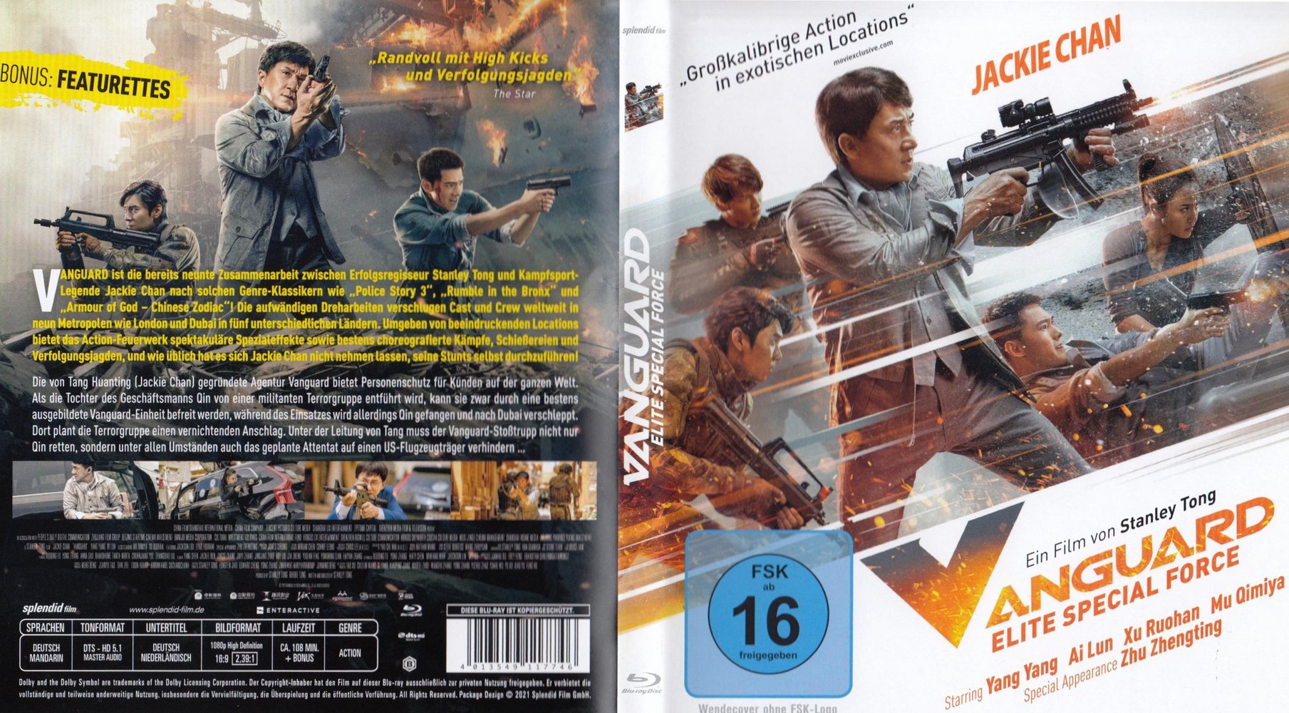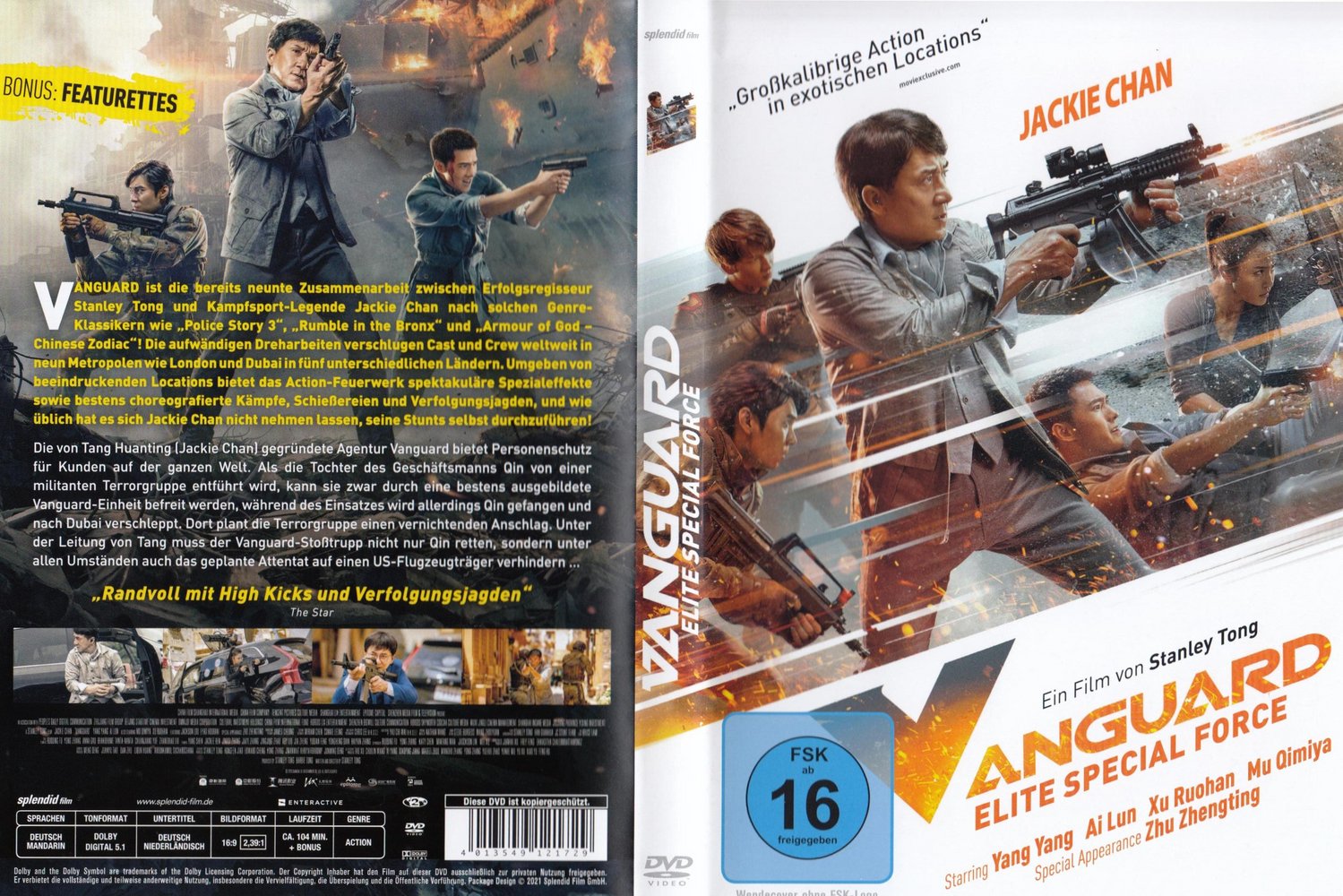 'Vanguard - Elite Special Force' (2020) ist die bereits neunte Zusammenarbeit zwischen Erfolgsregisseur Stanley Tong und Kampfsport-Legende Jackie Chan nach solchen Genre-Klassikern wie 'Police Story 3', 'Rumble in the Bronx' oder 'Armour of God - Chinese Zodiac'. Die aufwändigen Dreharbeiten verschlugen Cast und Crew weltweit in neun Metropolen wie London und Dubai in fünf unterschiedlichen Ländern. Umgeben von beeindruckenden Locations bietet das Action-Feuerwerk spektakuläre Spezialeffekte sowie bestens choreografierte Kämpfe, Schießereien und Verfolgungsjagden - und wie üblich hat es sich Jackie Chan nicht nehmen lassen, seine Stunts selbst durchzuführen.