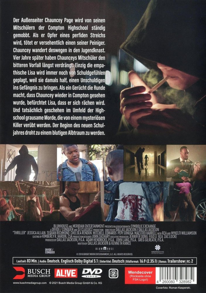 In the Blumhouse horror production 'Thriller' (2018) by director Dallas Jackson, in addition to Jessica Allain as Lisa and Jason Woods as Chauncey Page, also cast with rap superstar 'RZA' as headmaster Hurd, to be experienced at the German premiere on DVD and Blu-ray from April 30, 2021 in its own home cinema.