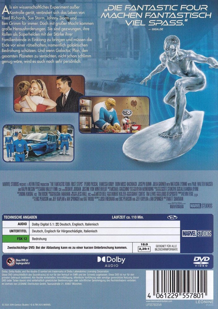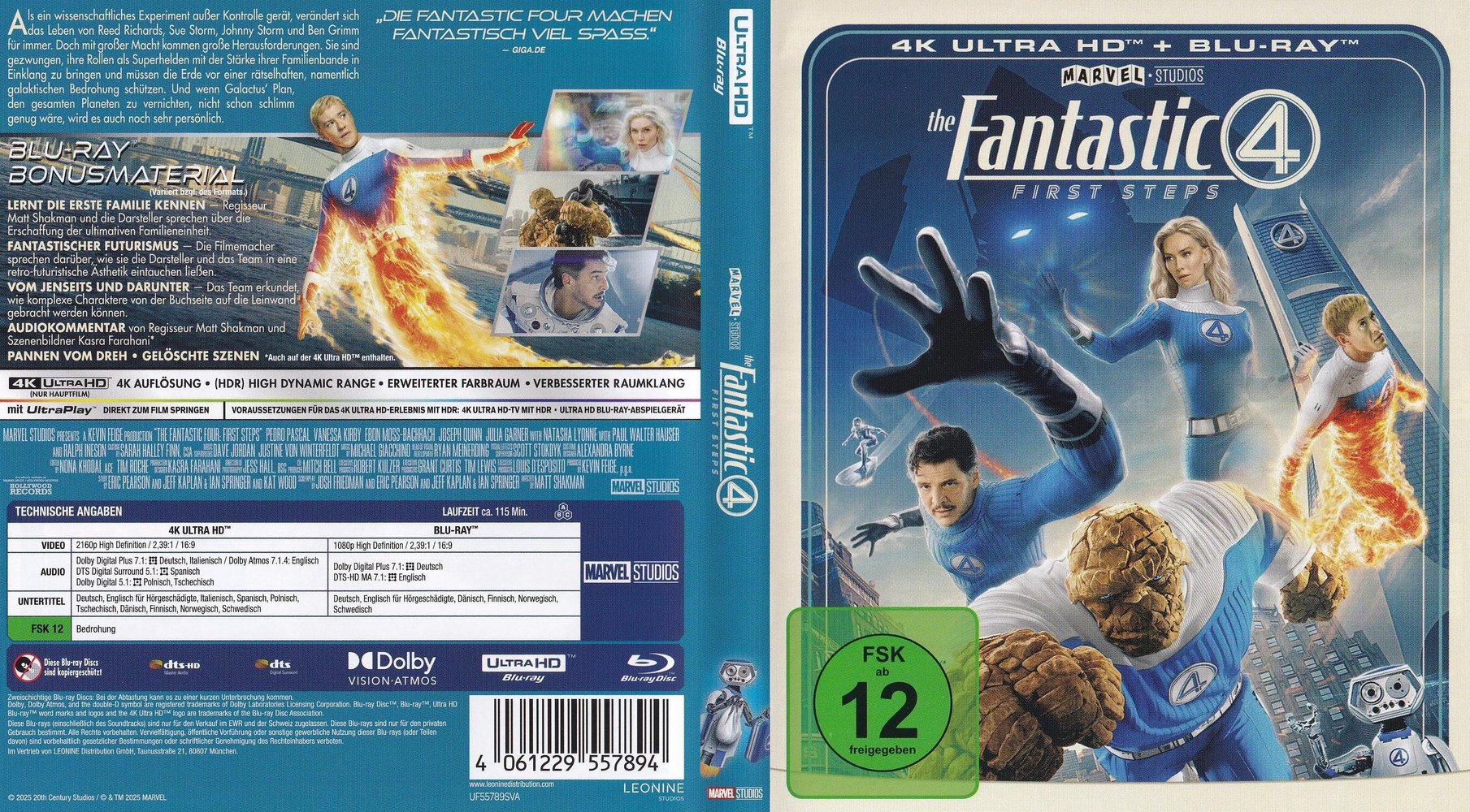 Welcome to the family. One of the most famous families of the 'MCU', the 'Marvel Cinematic Universe', came back to the big screen in the film year 2025 with the German theatrical release on July 24, 2025: 'The Fantastic Four', known in this country as 'The Fantastic Four'. The superhero quartet consisting of Mr. Fantastic, 'The Thing', 'Invisible Woman' and the human torch. Star-studded with Pedro Pascal as Reed Richards aka 'Mister Fantastic', Vanessa Kirby as Sue Storm aka 'Invisible Woman' and Ebon Moss-Bachrach as Ben Grimm, the thing. The action adventure also stars Paul Walter Hauser, John Malkovich, Natasha Lyonne and Sarah Niles. It was directed by Matt Shakman ('WandaVision'), produced by Kevin Feige and executive produced by Louis D'Esposito, Grant Curtis and Tim Lewis. 'The Fantastic Four - First Steps' will also be released in your home cinema in Germany on DVD, Blu-ray and 4K UHD from October 31, 2025!