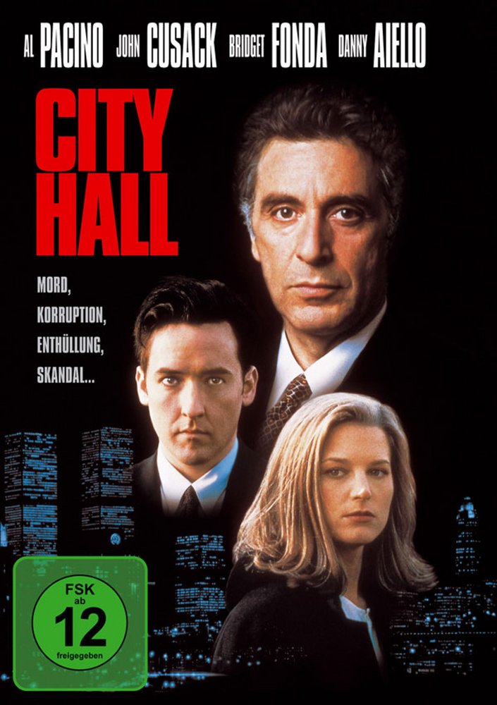 'City Hall' (1996), a masterfully staged political thriller by director Harold Becker ('Sea of Love'). Al Pacino ('Every Damn Sunday') shines as a mendacious politician alongside John Cusack ('Con Air', 'The Thin Line'), Bridget Fonda ('Lake Placid', 'Jackie Brown'), Danny Aiello, Martin Landau, Tony Franciosa and David Paymer.