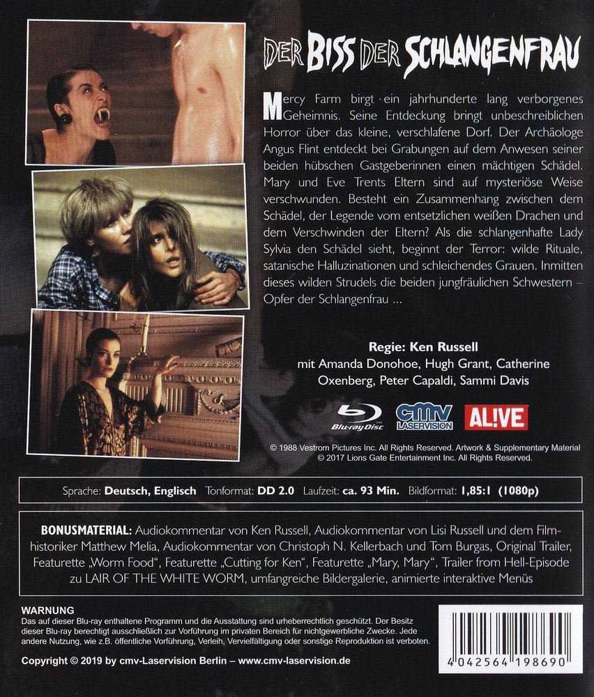 On Mercy Farm, archaeologist Angus Flint (Peter Capaldi) discovers the skull of a prehistoric beast. As a result, strange incidents occur. People disappear without a trace, the skull is stolen, bizarre nightmares of crosses and white worms haunt the residents. The key seems to be the snake-like Lady Sylvia Marsh (Amanda Donohoe), who celebrates unholy ceremonies in her gloomy castle. Soon, Flint has to realize that there is more than a grain of truth in the local legend about Lord James D'Ampton (Hugh Grant) and the man-eating D'Ampton worm.