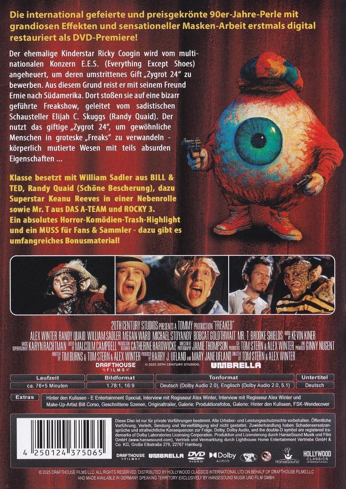 Ricky Coogan (Alex Winter), money-hungry teen idol and megastar, is supposed to promote the turbo fertilizer 'Noxon' of a corporation. So he flies with his chaotic buddy Ernie (Michael Stoyanov) to South America, to the deepest provincial nest, the only spot on earth where cell-altering power dung is not yet banned. The two get lost in the jungle and suddenly end up in front of Professor Elijah C. Skugg's (Randy Quaid) 'Mutant Department Store'. Once inside, they make a gruesome discovery: Skuggs has long since found another use for the highly toxic 'Noxon'. He pours it on unsuspecting tourists and thus produces his monsters, the 'freaks'. Ricky is his next victim, alongside Skye Daley (Brooke Shields). One half of Ricky's body has already turned into a really disgusting, hairy monster, and Skruggs is running out of 'Noxon'. But that's just the beginning of the completely crazy 'mutant show' with the hair-raising worm, sock head, nose, Rosie pen head, bearded lady and Juan, the dog man.