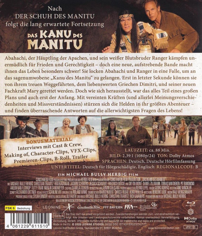 Michael Bully Herbig und 'Constantin Film' freuen sich, die Fortsetzung von 'Der Schuh des Manitu' (2001), einem der erfolgreichsten deutschen Filme aller Zeiten, ankündigen zu dürfen. 'Das Kanu des Manitu' soll am 14. August 2025 in die Kinos kommen. Herbig nimmt, wie auch schon beim ersten Teil, im Regiestuhl Platz und übernimmt auch die Produktion. Nach Sketchen der Comedyshow 'Bullyparade' drehte Bully 2001 den Kinofilm 'Der Schuh des Manitu', eine Parodie auf die Winnetou-Filme der 60er Jahre, der mit fast 12 Millionen Kinobesuchern zum erfolgreichsten deutschen Film wurde. Die augenzwinkernde Hommage an Winnetou & Co. besticht durch doppelbödige Dialoge, perfekt getimtem Slapstick und einer großartigen Besetzung. Die Dreharbeiten zu 'Das Kanu des Manitu' beginnen bereits 2024, nach einem Drehbuch von Michael Bully Herbig, Rick Kavanian und Christian Tramitz. Weitere Details zur Besetzung werden in den folgenden Monaten bekannt gegeben. So viel sei schon einmal verraten: Abahachi, Ranger und Dimitri bekommen ordentlich Verstärkung.