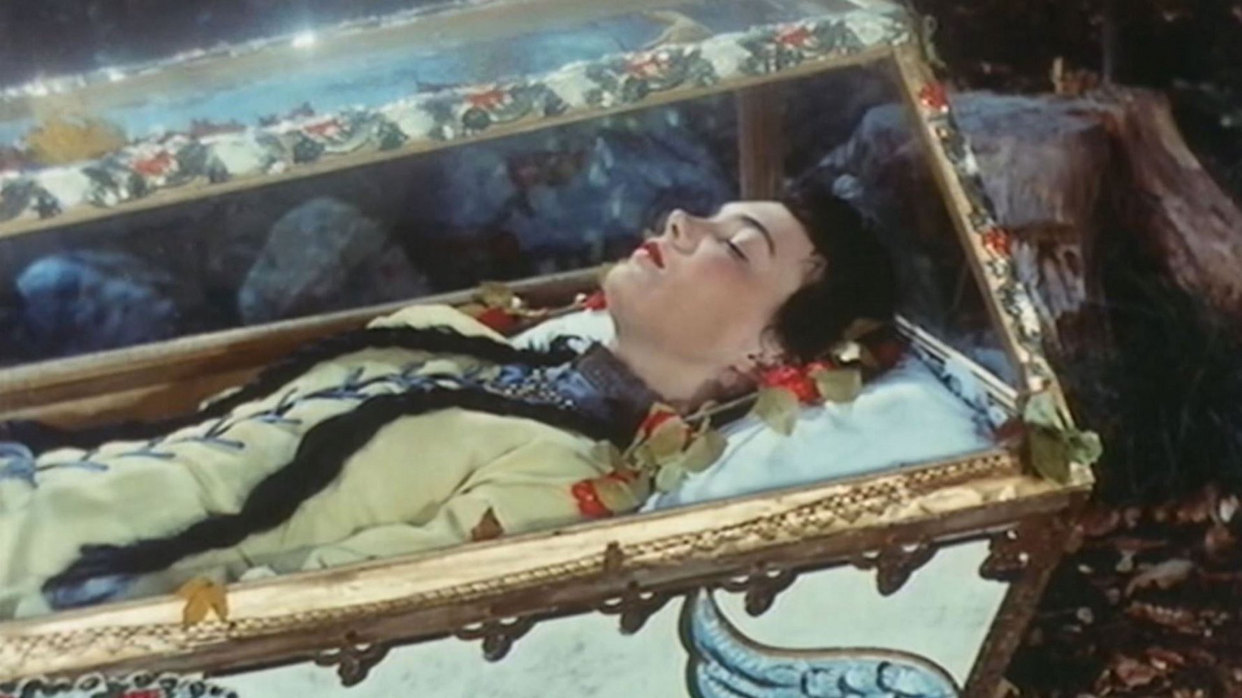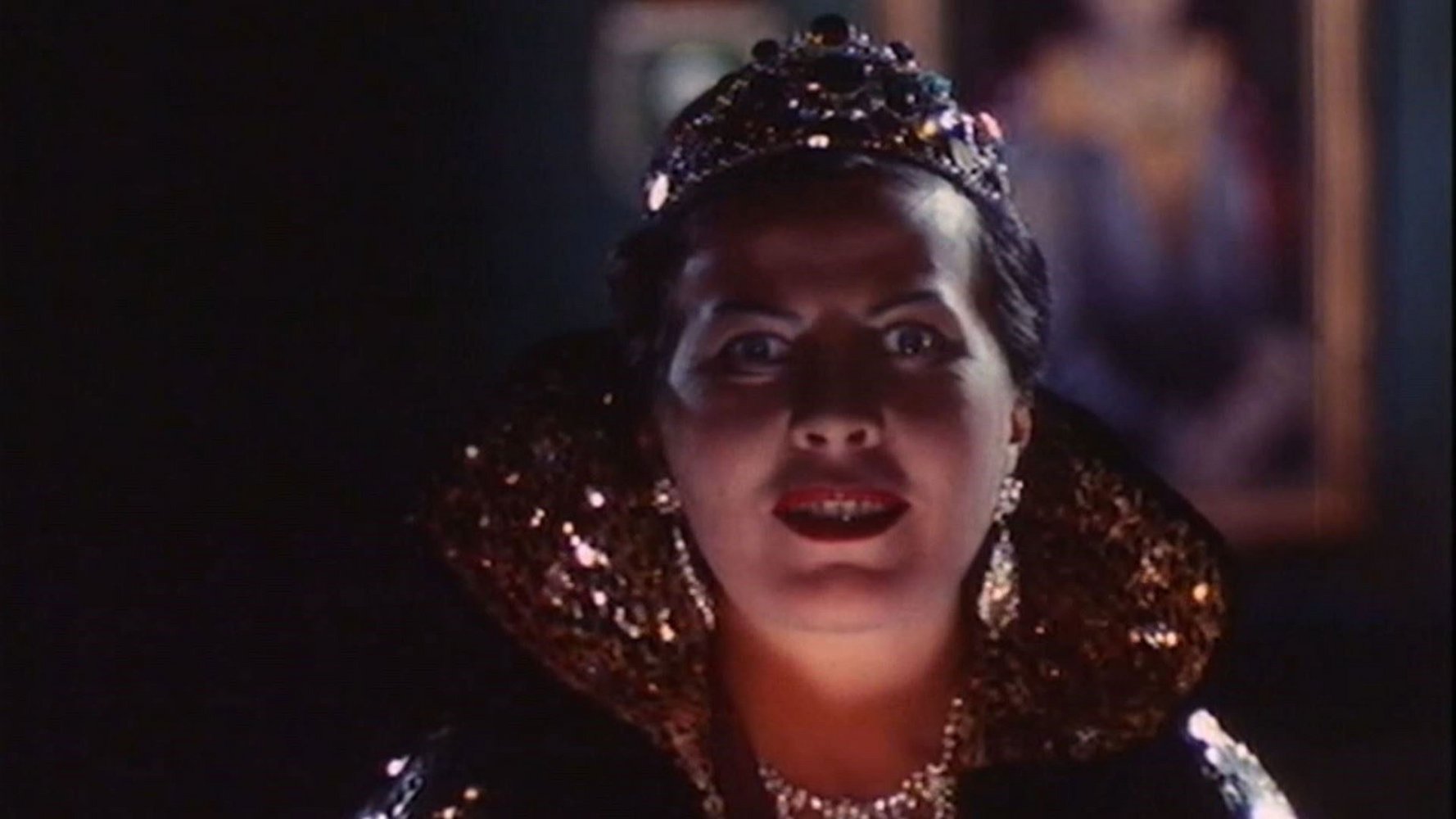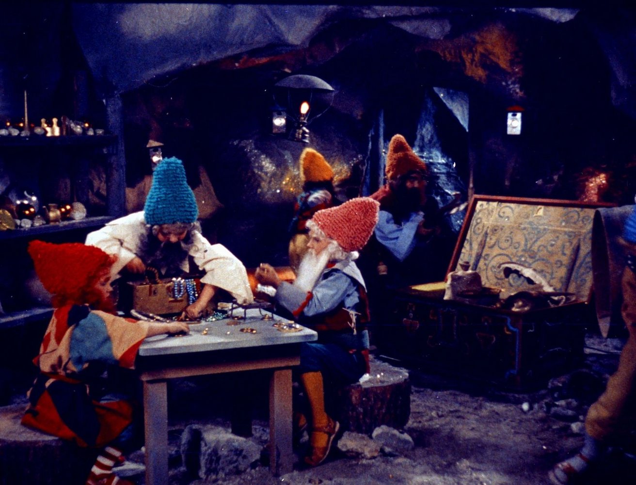 The king's daughter Snow White (Elke Arendt) is of enchanting beauty. Her skin is white as snow, her lips red as blood, and her hair black as ebony. After the queen had died giving birth to her daughter, the king had remarried. But Snow White's stepmother is a vain and selfish woman who wants to be the most beautiful in the land at all costs. So she orders the hunter to kill Snow White. But he does not have the heart to do the deed and leaves the innocent king's child to the wild forest. There the beautiful girl finds shelter with the seven dwarfs, who protect her and love her above all else. But when the evil stepmother learns about it through her magic mirror, she disguises herself to kill Snow White herself.