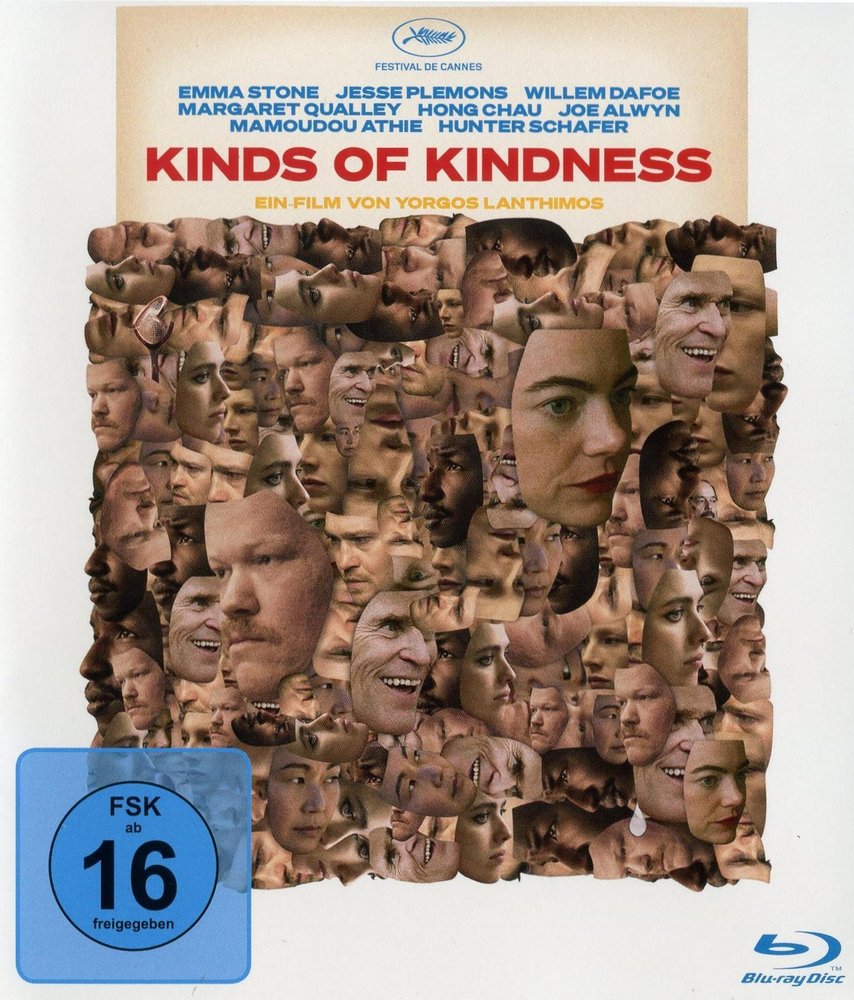 In the drama 'Kinds of Kindness' (2024) by 'Poor Things' director Yorgos Lanthimos based on the screenplay by Lanthimos and Efthimis Filippou, starring Emma Stone, Jesse Plemons, Willem Dafoe, Margaret Qualley, Hong Chau, Joe Alwyn, Mamoudou Athie and Hunter Schäfer, at the German theatrical release on July 4, 2024 and release in home theaters exclusively on Blu-ray on October 25, 2024.