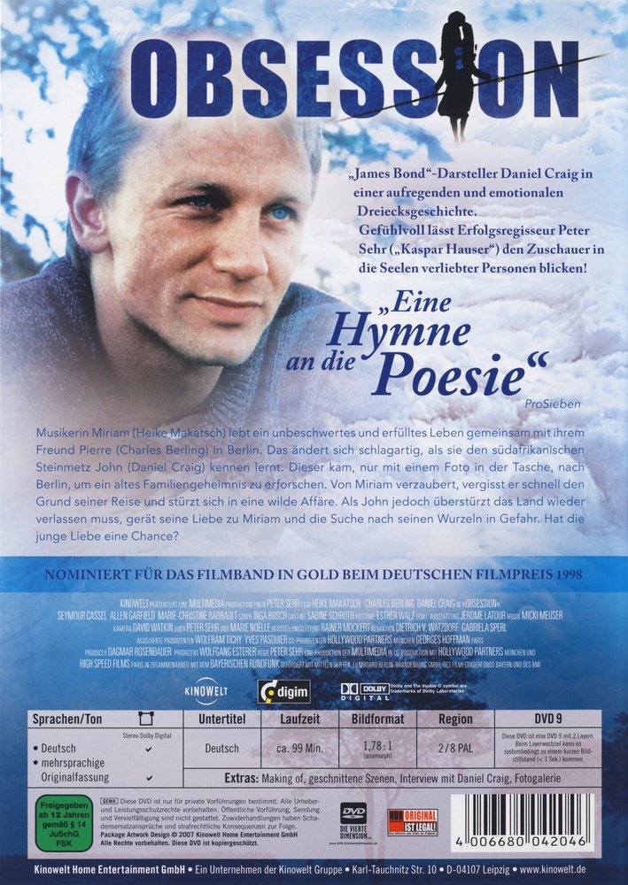 In 'Obsession' (1997), director Peter Sehr tells a sensitive love triangle with 'James Bond' actor Daniel Craig in the leading role. In addition to the top-class cast, the sensitively staged drama convinces with breathtaking images and a great soundtrack.