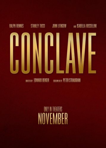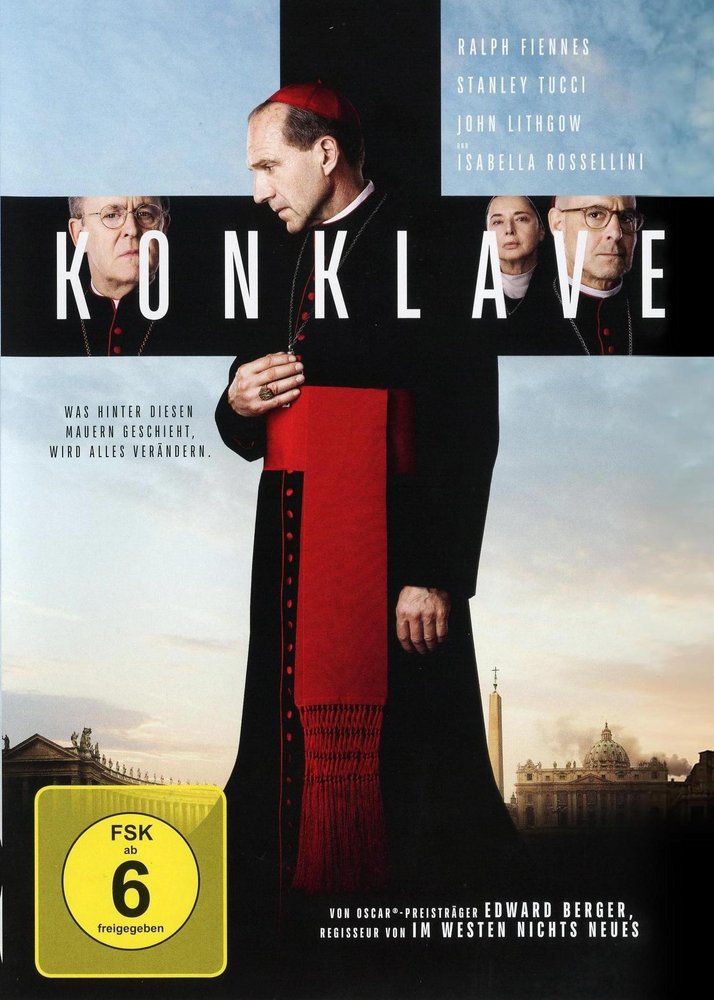 His film adaptation of 'All Quiet on the Western Front' won four Oscars, and now successful director Edward Berger has once again filmed a book with 'Konklave' (2024). Based on the best-selling novel of the same name by Robert Harris, the Oscar-nominated director has directed a visually stunning and atmospherically dense thriller dedicated to one of the oldest and most mysterious rituals. The outstanding ensemble is led by Oscar-nominated British actor Ralph Fiennes (from 'Grand Budapest Hotel', 'Schindler's List', 'The English Patient'), who shines in the leading role of Cardinal Lawrence. Other roles include Oscar-nominated Stanley Tucci ('In My Sky', 'The Hunger Games'), John Lithgow ('The Crown', 'Killers of the Flower Moon') and Isabella Rossellini ('Blue Velvet', 'La Chimera'), among others, at the theatrical release in Germany on November 21, 2024.