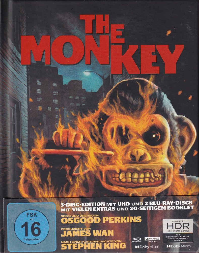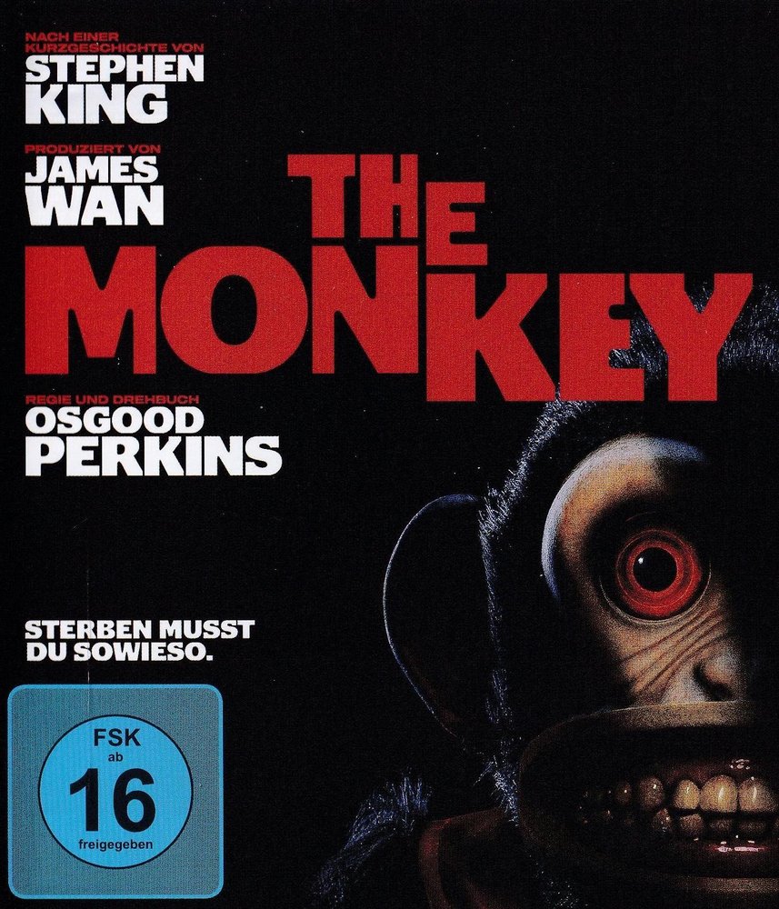 'The Monkey' (2025) is based on a short story by Stephen King, starring Theo James (from the 'Divergent' film series) alongside Elijah Wood ('The Lord of the Rings'), Adam Scott as Captain Petey Shelborn, Tatiana Maslany as Lois, Colin O'Brien as Petey, Rohan Campbell as Ricky, Sarah Levy as Aunt Ida, Nicco Del Rio, Zia Newton as Dwayne, Kingston Chan as Lieutenant Pepper, Laura Mennell as Petey's Mom, Tess Degenstein as Barbara, Beatrix Perkins as Florence and Danica Dreyer as babysitter Annie. Written and directed by Osgood Perkins (see most recently 'Longlegs') and produced by James Wan ('Saw', 'Insidious', 'The Conjuring' franchises), with a theatrical release in Germany on February 20, 2025 and home cinema release on DVD, Blu-ray and 4K UHD on June 26, 2025.