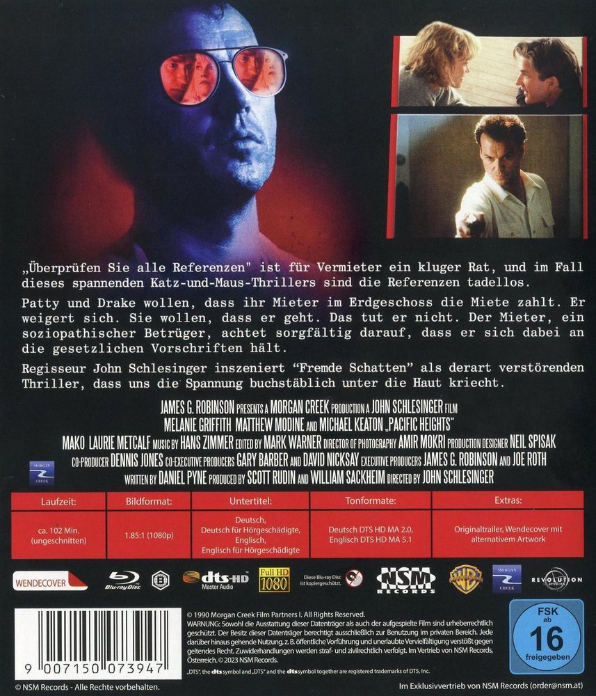 'Überprüfen Sie alle Referenzen' ist für Vermieter ein kluger Rat, und dieses fintenreiche Katz-und-Maus-Spiel hat wirklich nur die besten Referenzen. Melanie Griffith und Matthew Modine spielen das unter der Hypothekenlast leidende Paar, das sein restauriertes viktorianisches Traumhaus unbedingt behalten möchte. Aber dafür brauchen die beiden die Miete für die Wohnung im Erdgeschoss. Michael Keaton spielt den albtraumhaft unberechenbaren Carter Hayes, der sich das Haus selbst unter den Nagel reißen will. Und Regisseur John Schlesinger ('Asphalt-Cowboy') inszeniert 'Pacific Heights - Fremde Schatten' (1990) als derart verstörenden Thriller, dass Ihnen die Spannung buchstäblich unter die Haut kriechen wird.