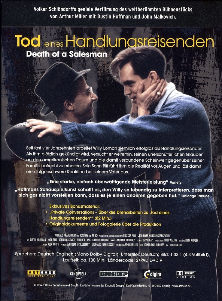 Volker Schlöndorff's award-winning film adaptation of Arthur Miller's world-famous stage play impresses with its attention to detail and an excellent cast. Dustin Hoffman was awarded the 'Golden Globe' and the 'Emmy Award' for his outstanding performance.