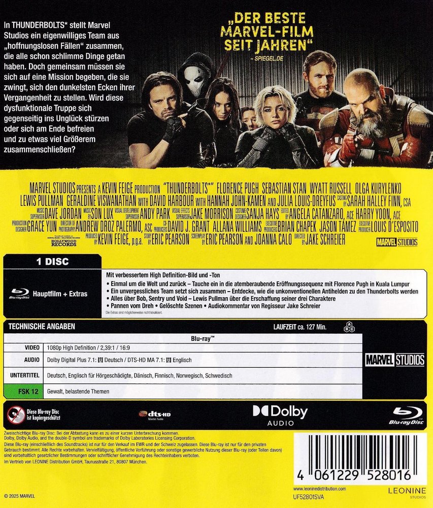 In 'Thunderbolts' stellt 'Marvel Studios' ein eigenwilliges Team aus hoffnungslosen Fällen zusammen, die alle schon schlimme Dinge getan haben. Doch gemeinsam müssen sie sich auf eine Mission begeben, die sie zwingt, sich den dunkelsten Ecken ihrer Vergangenheit zu stellen. Wird diese dysfunktionale Truppe sich gegenseitig ins Unglück stürzen oder sich am Ende befreien und zu etwas viel Größerem zusammenschließen? Pass auf, wen du versammelst: Mit den Thunderbolts kommt 2025 das nächste Superhelden-Team ins 'MCU', in das 'Marvel Cinematic Universe', beim Kinostart in Deutschland am 1. Mai 2025, basierend auf dem Marvel-Comics-Team 'Thunderbolts' von den Schöpfern Kurt Busiek und Mark Bagley. Die 'Marvel Studios' und eine Crew von Indie-Veteranen, die sich selbst verkauft haben, präsentieren 'Thunderbolts', ein unkonventionelles Team bestehend aus der depressiven Attentäterin Yelena Belova (Florence Pugh) zusammen mit den sonderbarsten Außenseitern des MCU. Neben einigen spannenden neuen Gesichtern, bringt der Film außerdem die Marvel-Cinematic-Universe-Charaktere Bucky Barnes (Sebastian Stan), Red Guardian (David Harbour), John Walker (Wyatt Russell), Taskmaster (Olga Kurylenko), Ghost (Hannah John-Kamen) und Valentina Allegra de Fontaine (Julia Louis-Dreyfus) zurück auf die Leinwand. Jake Schreier führte Regie bei 'Thunderbolts', Kevin Feige produzierte. Louis D'Esposito, Brian Chapek, Jason Tamez und Scarlett Johansson fungierten als ausführende Produzenten.