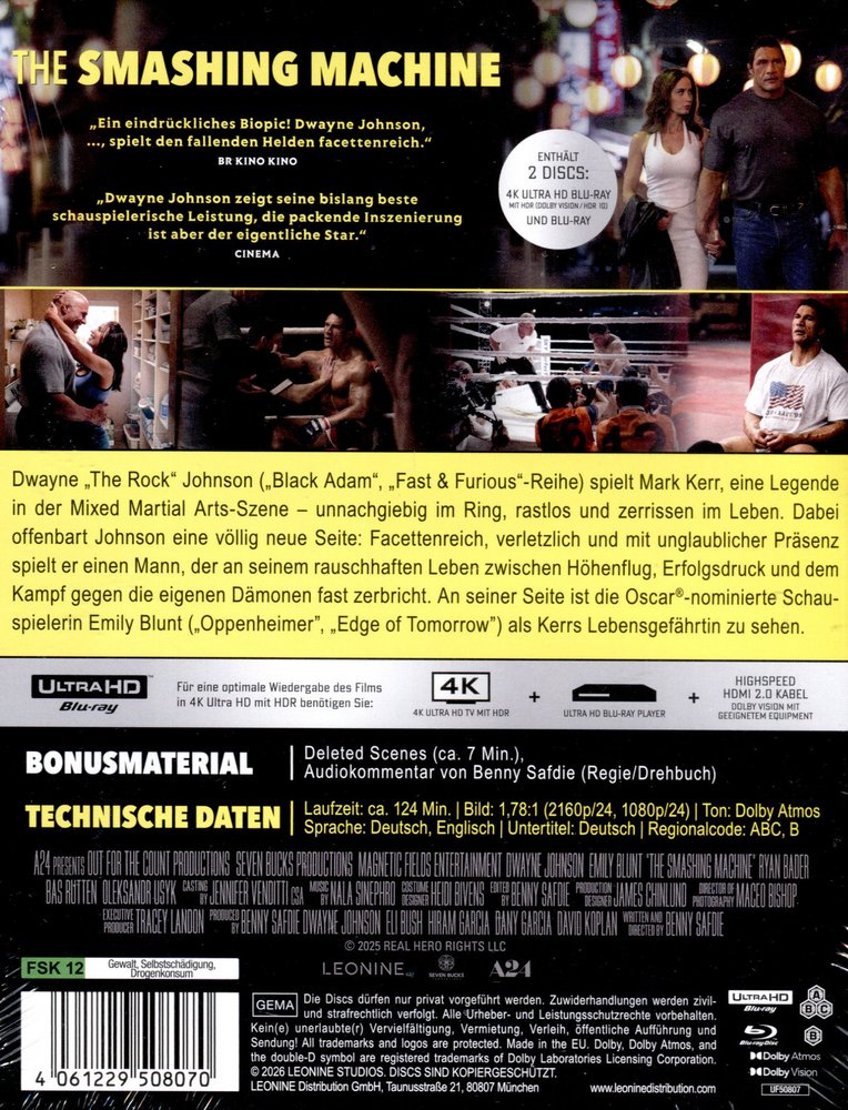 Mit THE SMASHING MACHINE kommt ein außergewöhnliches Drama auf die große Leinwand, das mit Hollywoodstar Dwayne "The Rock" Johnson ("Black Adam", "Fast & Furious"-Reihe) in der Rolle seines Lebens begeistert.